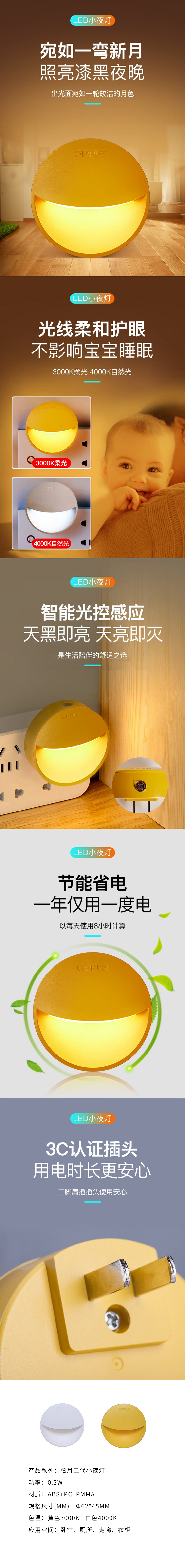 商品名称:OPPLE/欧普照明弦月二代感应小夜灯MW62-D0.2×2