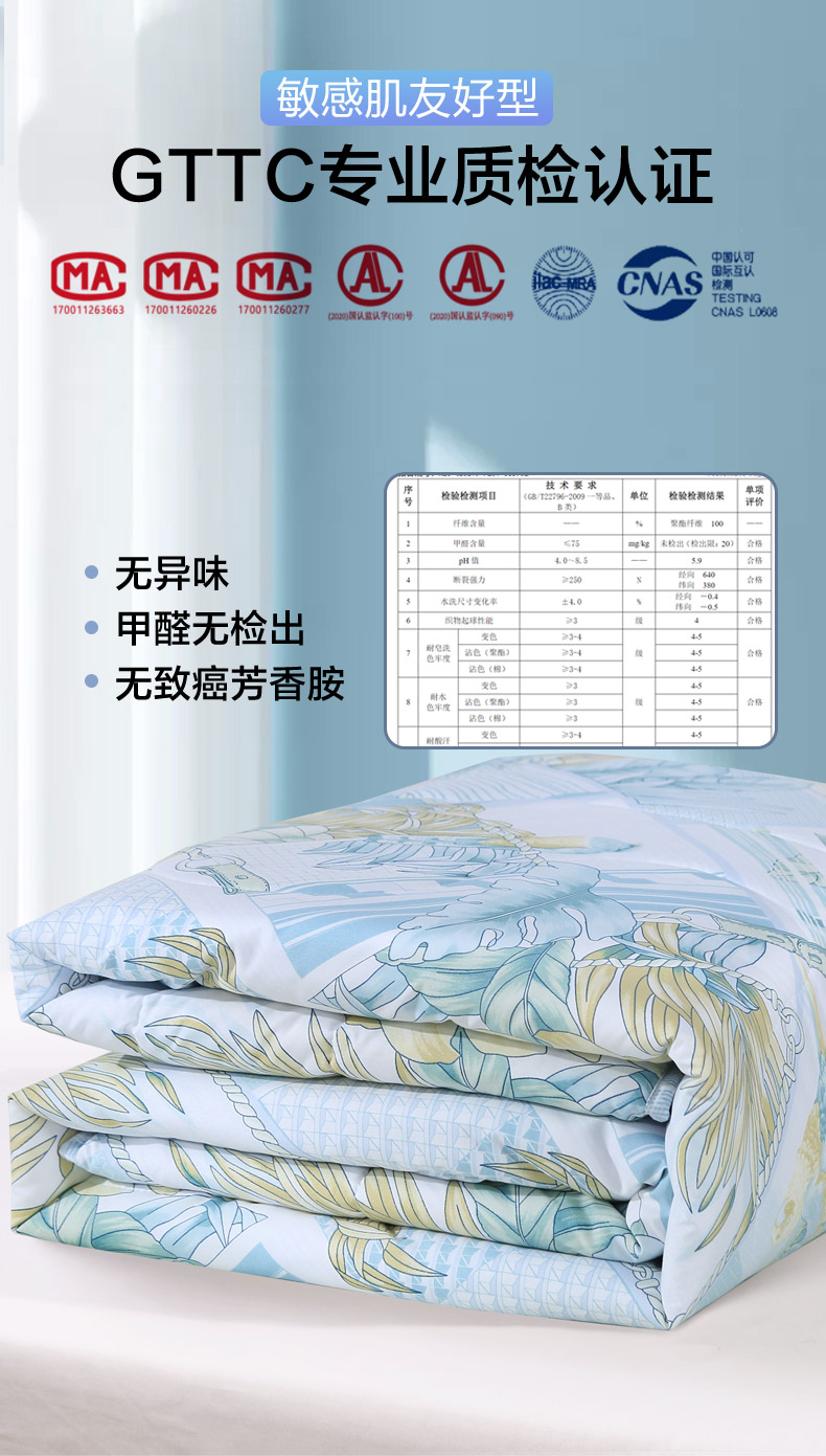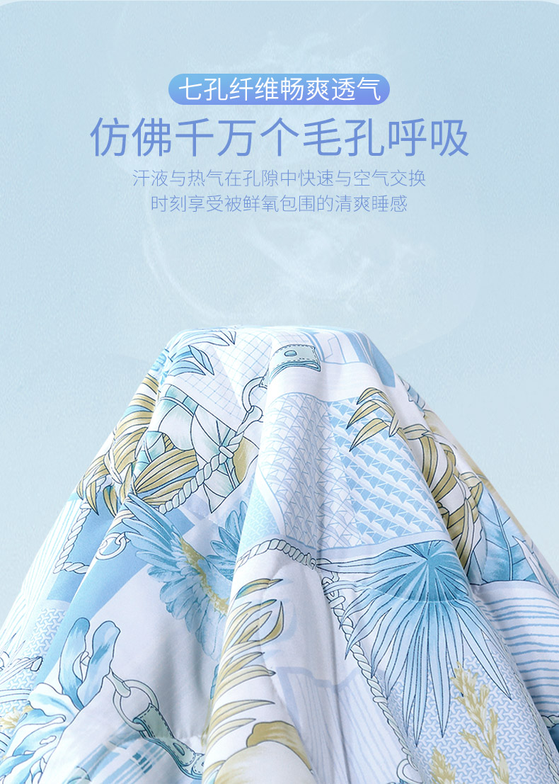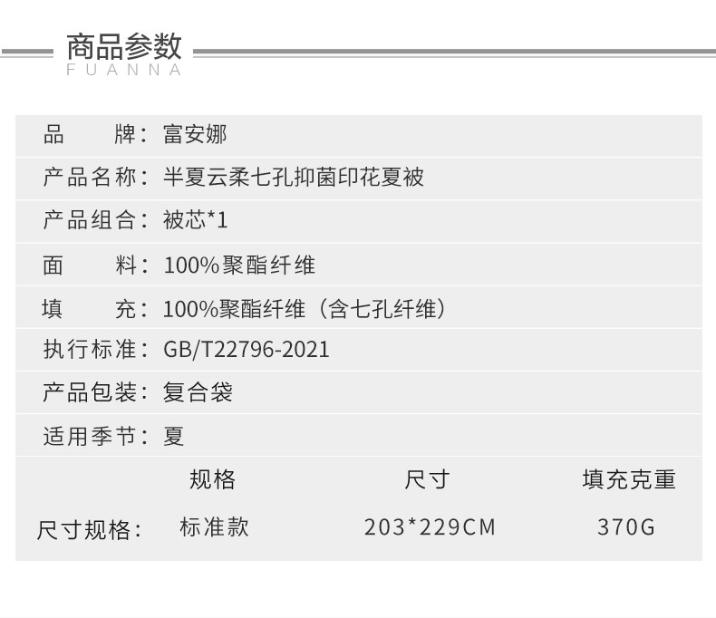 商品名称:FUANNA/富安娜半夏云柔七孔抑菌印花夏被203*229cm填充克重370g