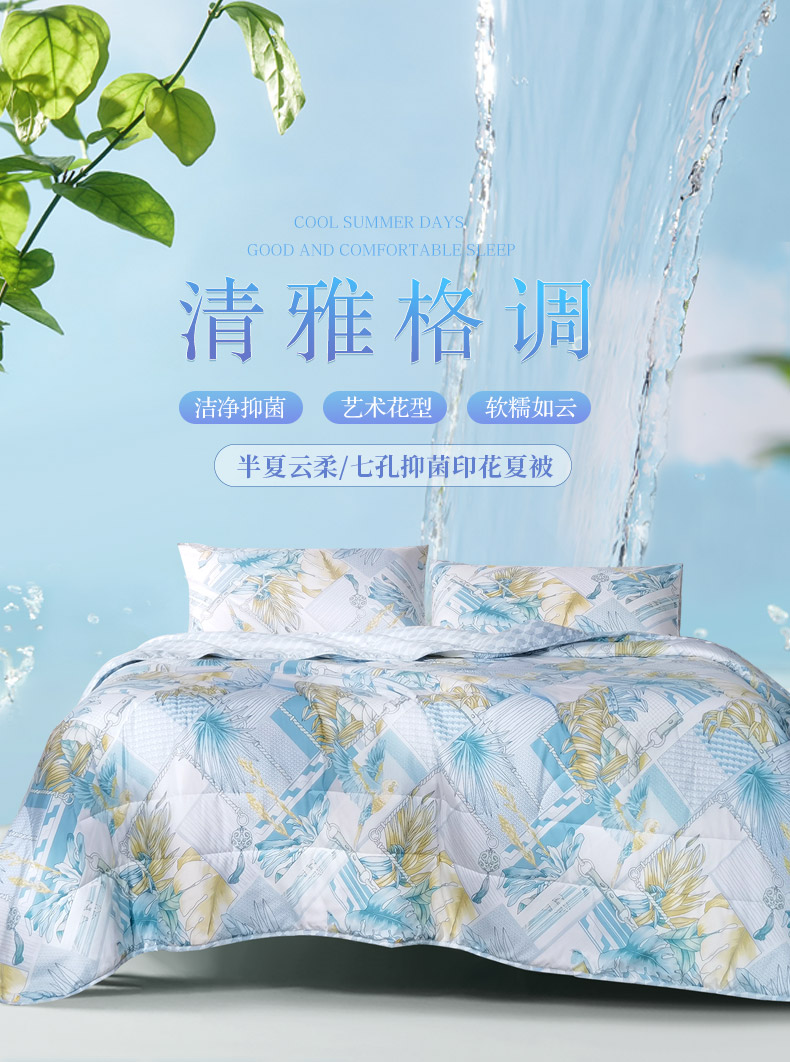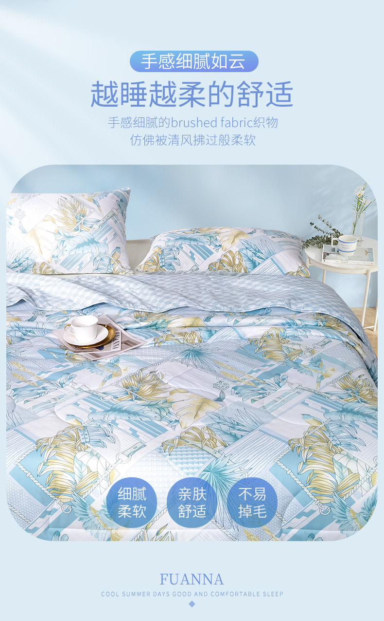 FUANNA/富安娜半夏云柔七孔抑菌印花夏被203*229cm填充克重370g