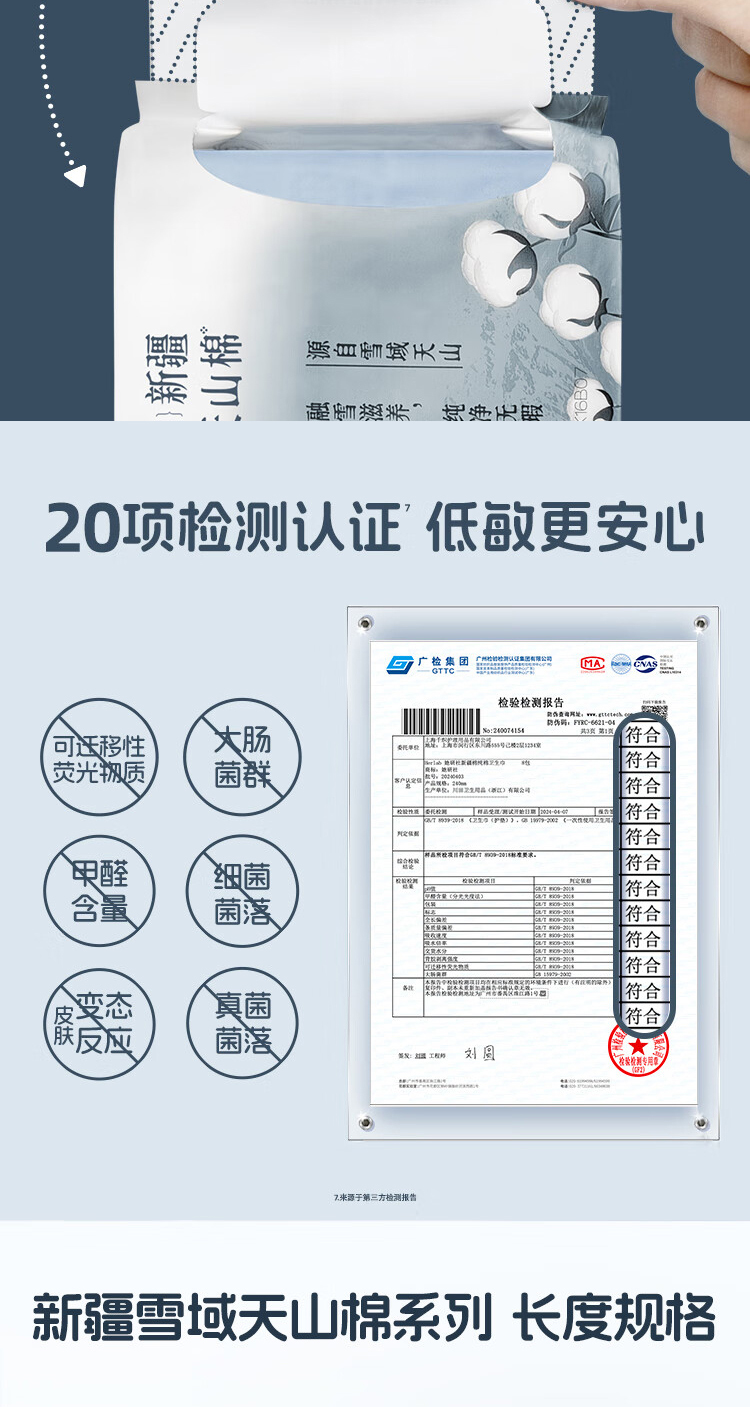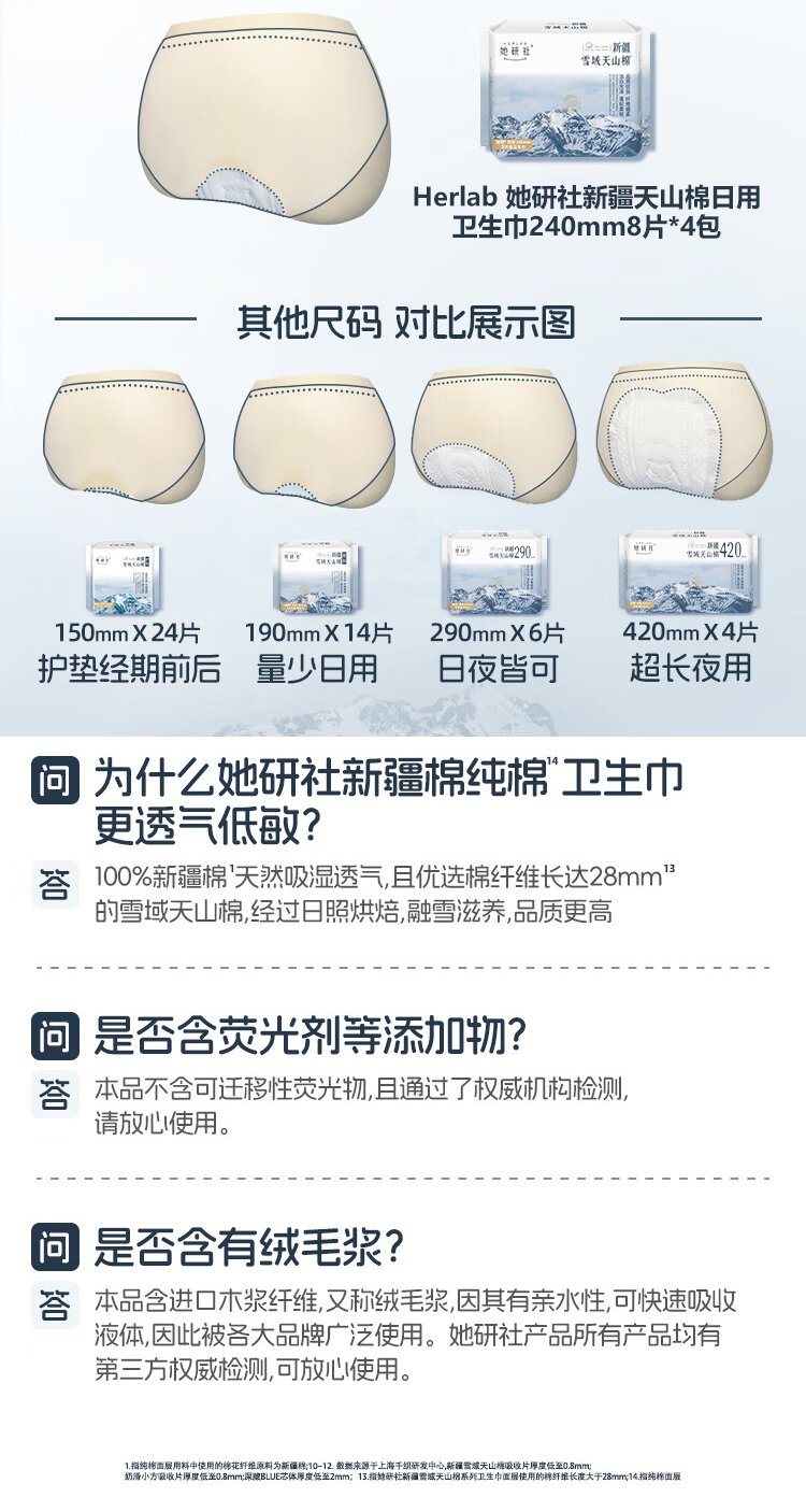 商品名称:Herlab/她研社新疆天山棉240mm日用卫生巾8片*4包