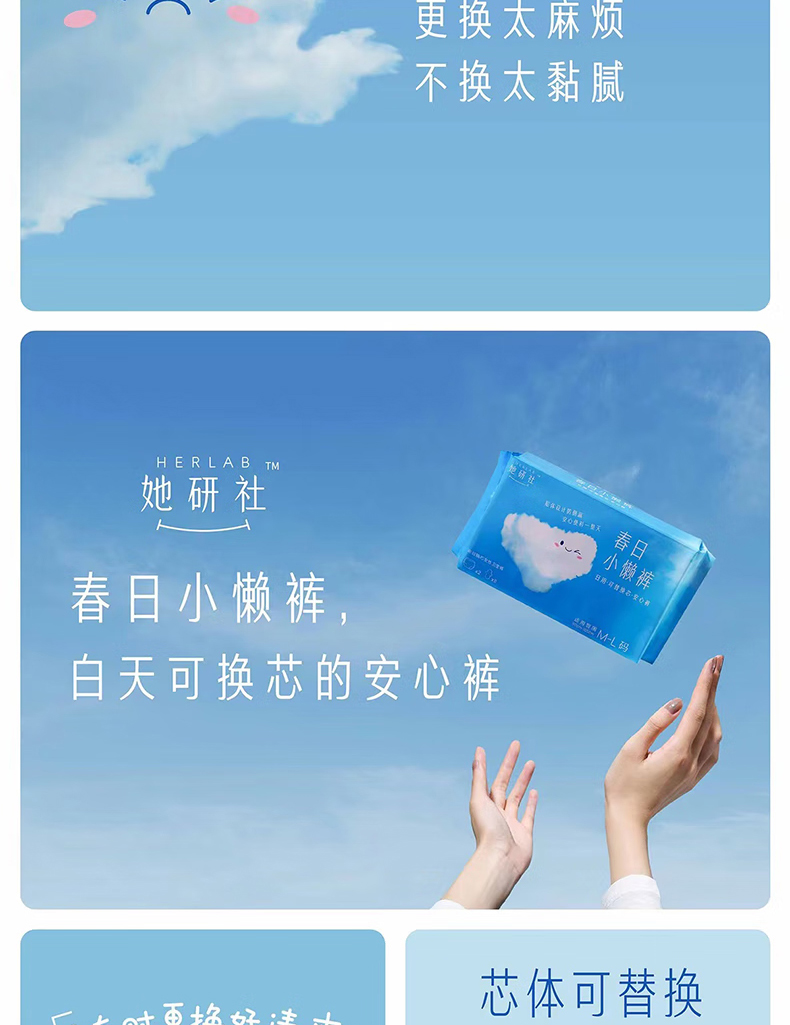 Herlab/她研社小懒裤日用M-L码4条+可替换芯16片