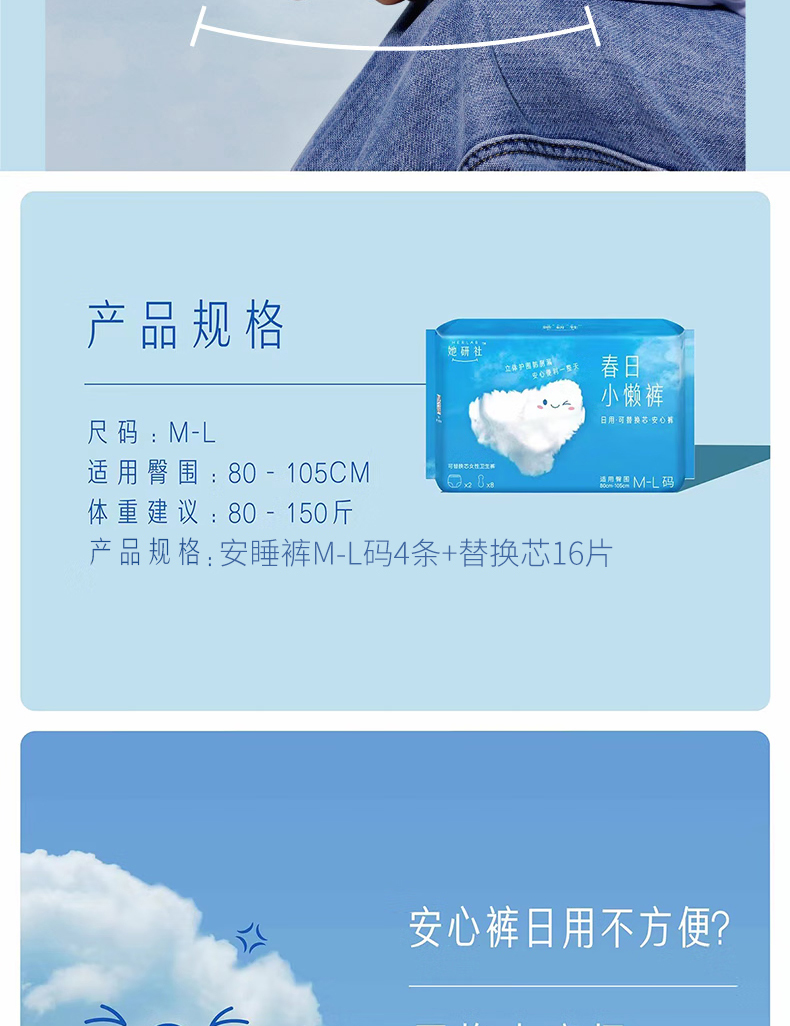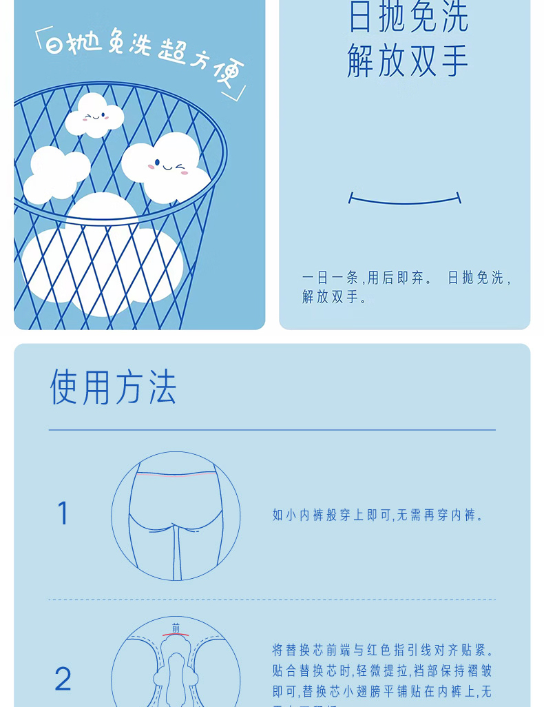 商品名称:Herlab/她研社小懒裤日用M-L码4条+可替换芯16片