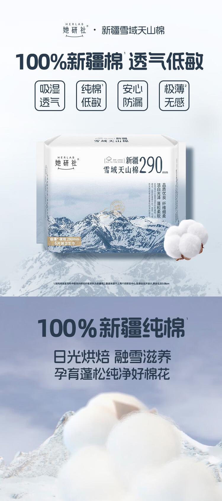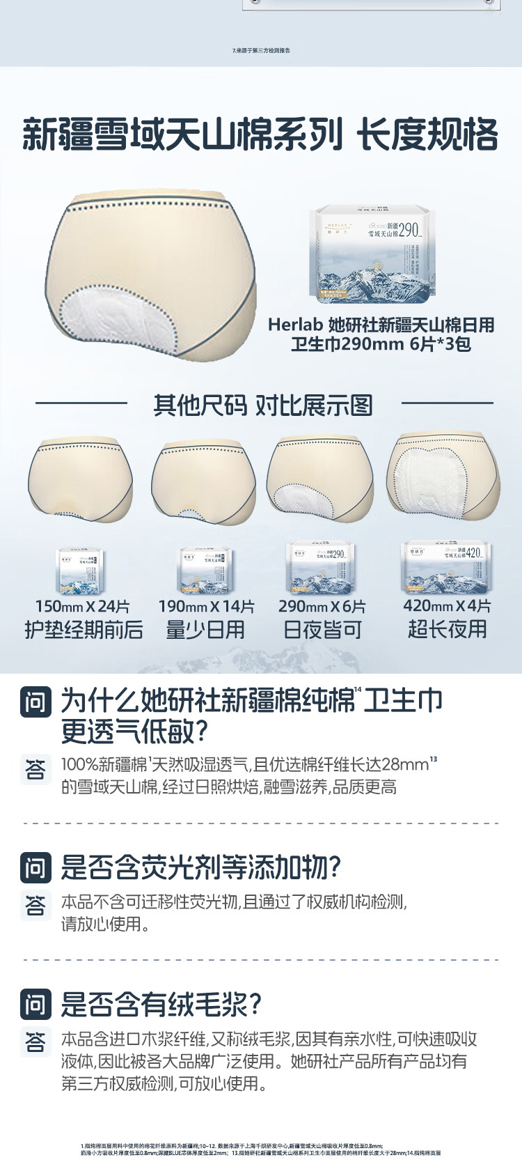 商品名称:Herlab/她研社新疆天山棉290mm日用卫生巾6片*3包