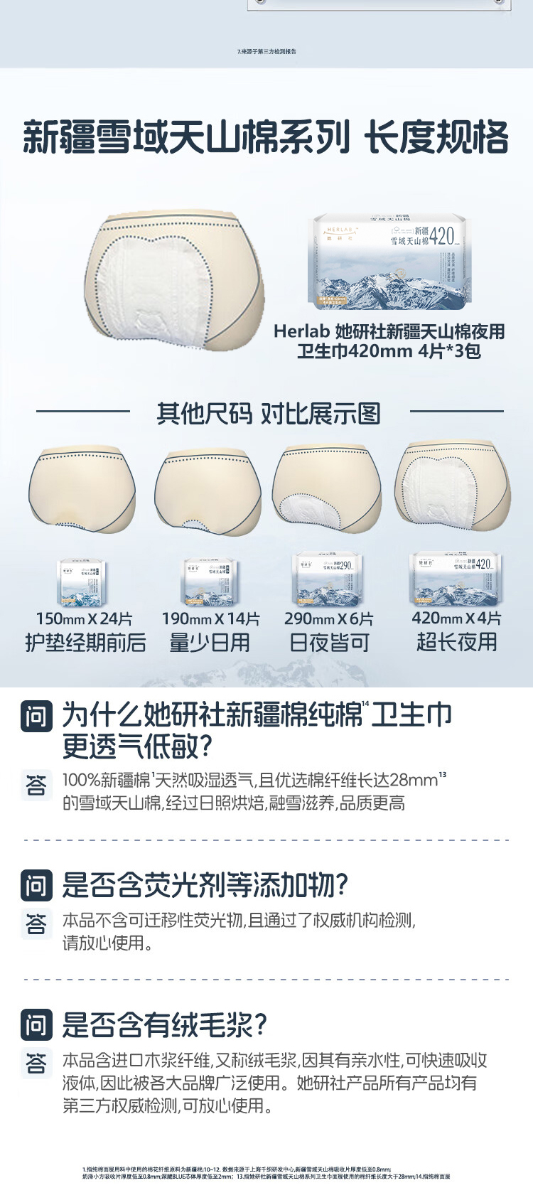 商品名称:Herlab/她研社新疆天山棉420mm夜用卫生巾4片*3包