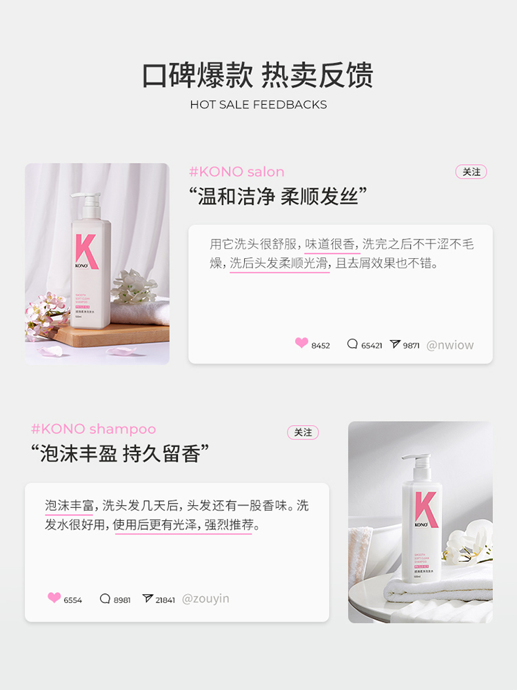 商品名称:KONO轻盈控油洗发水500ml+KONO顺滑柔净洗发水500ml