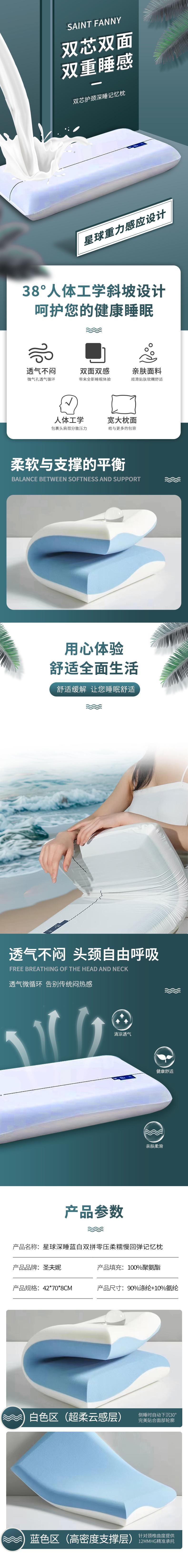 SENFUNI/圣夫妮星球深睡蓝白双拼零压柔糯慢回弹记忆枕1只