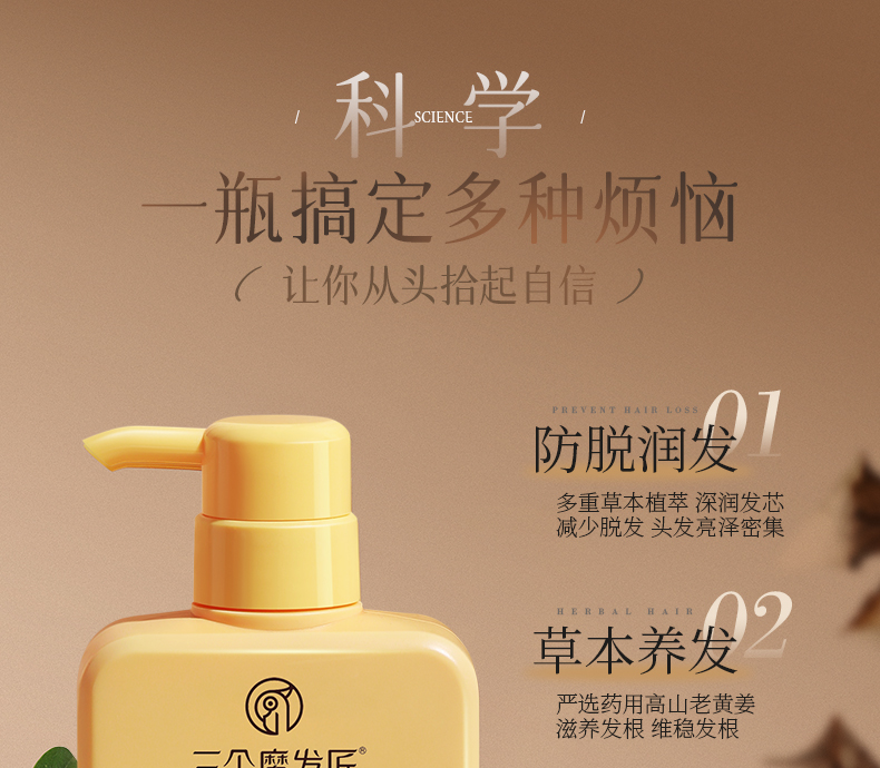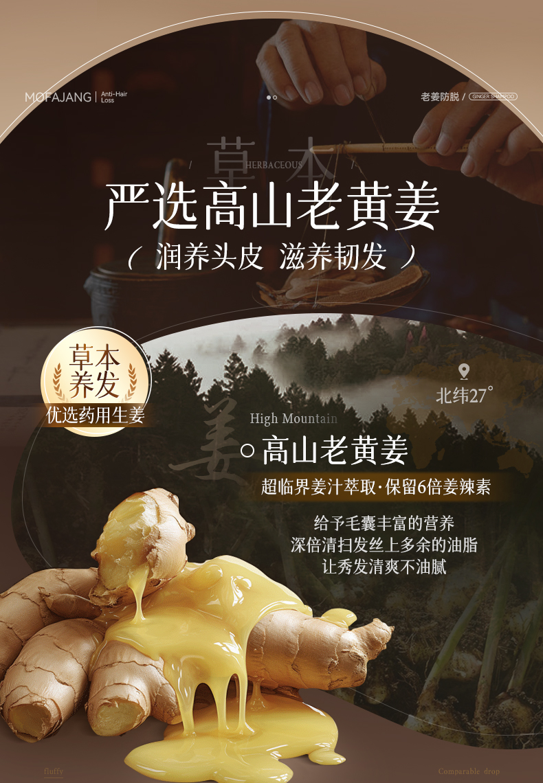 商品名称:三个魔发匠凹凸姜字方瓶防脱精华洗发乳500ml