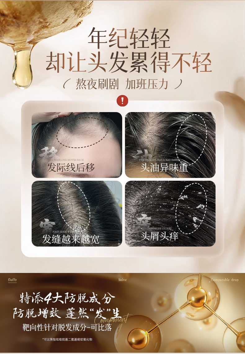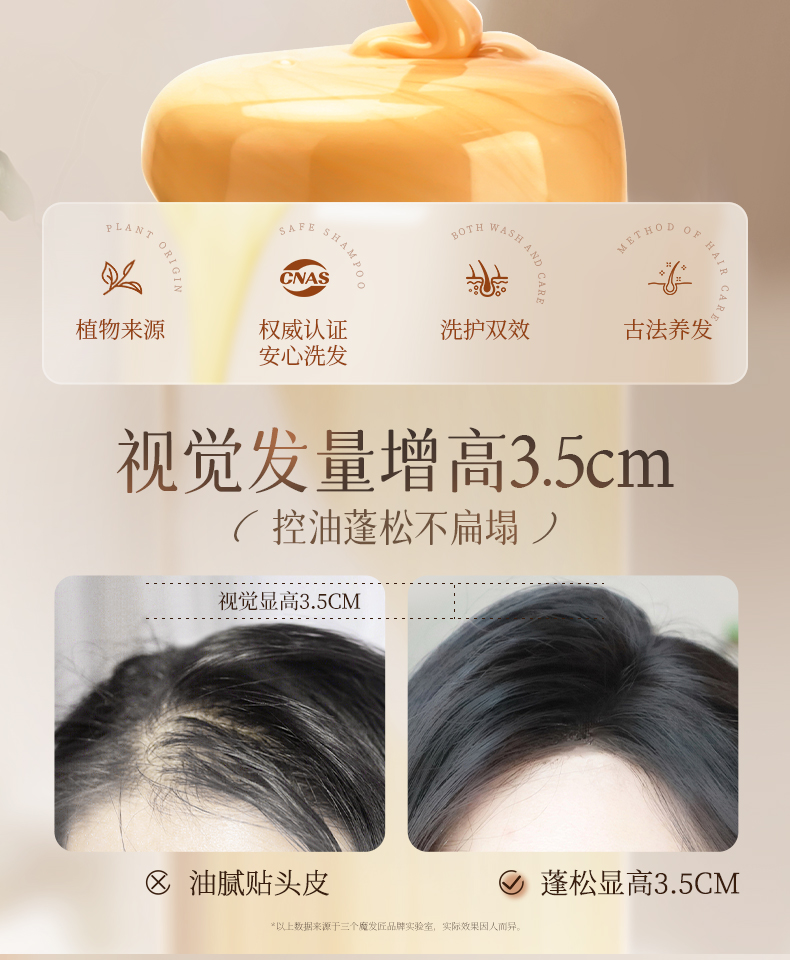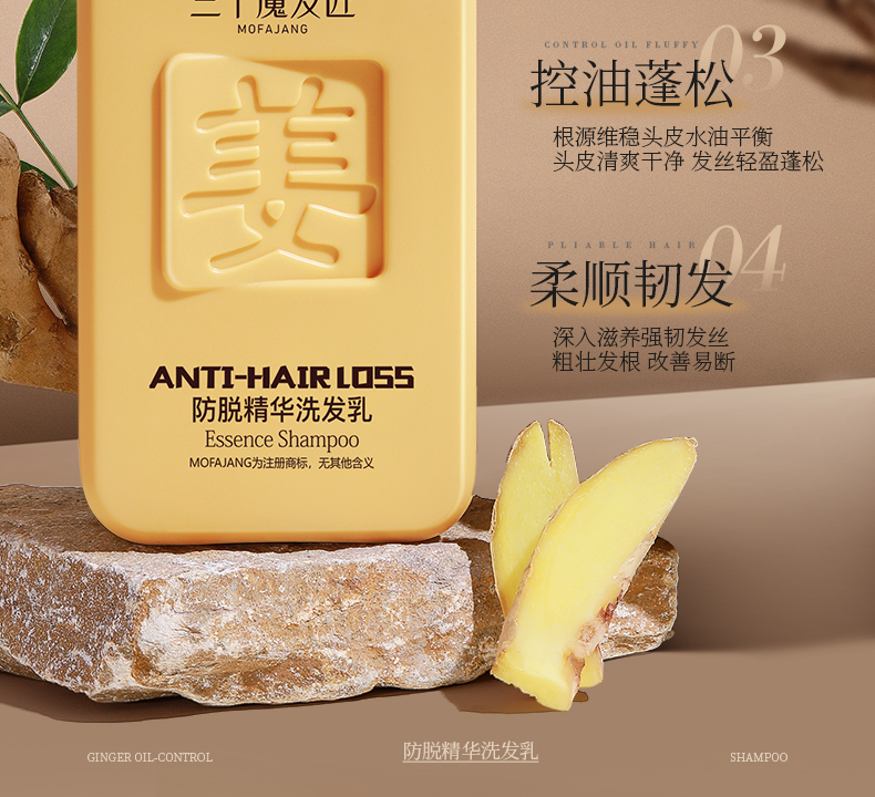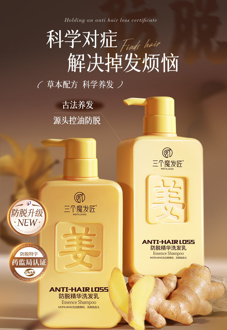 三个魔发匠凹凸姜字方瓶防脱精华洗发乳500ml