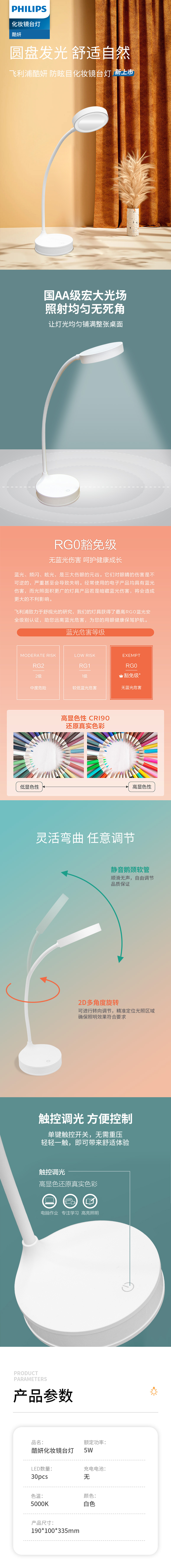 商品名称:PHILIPS/飞利浦酷妍LED防眩目化妆镜台灯