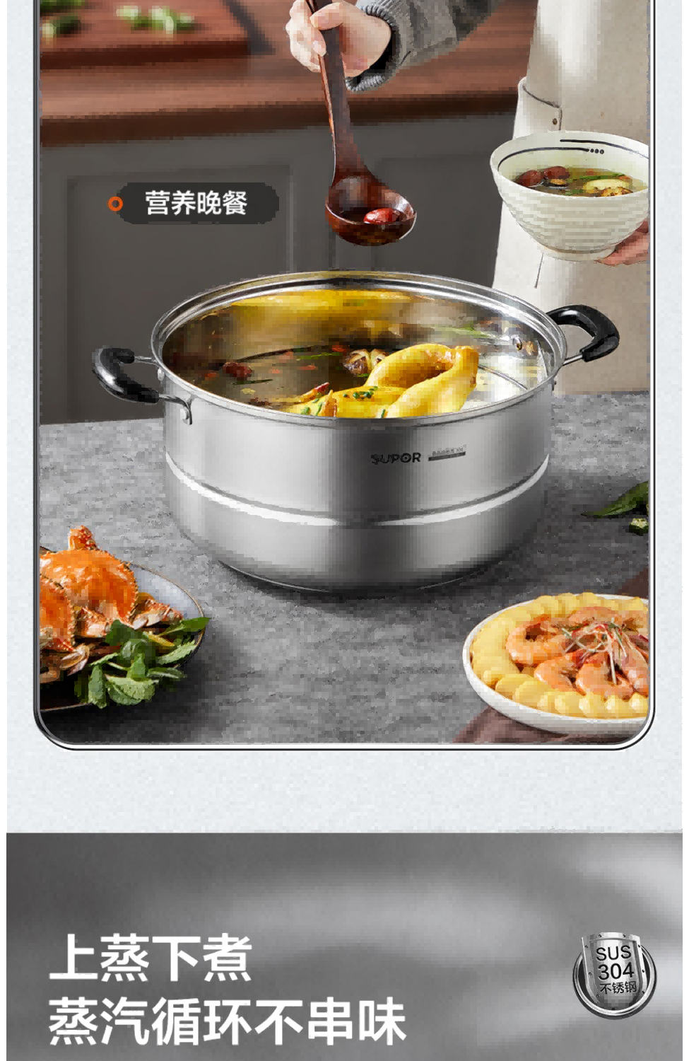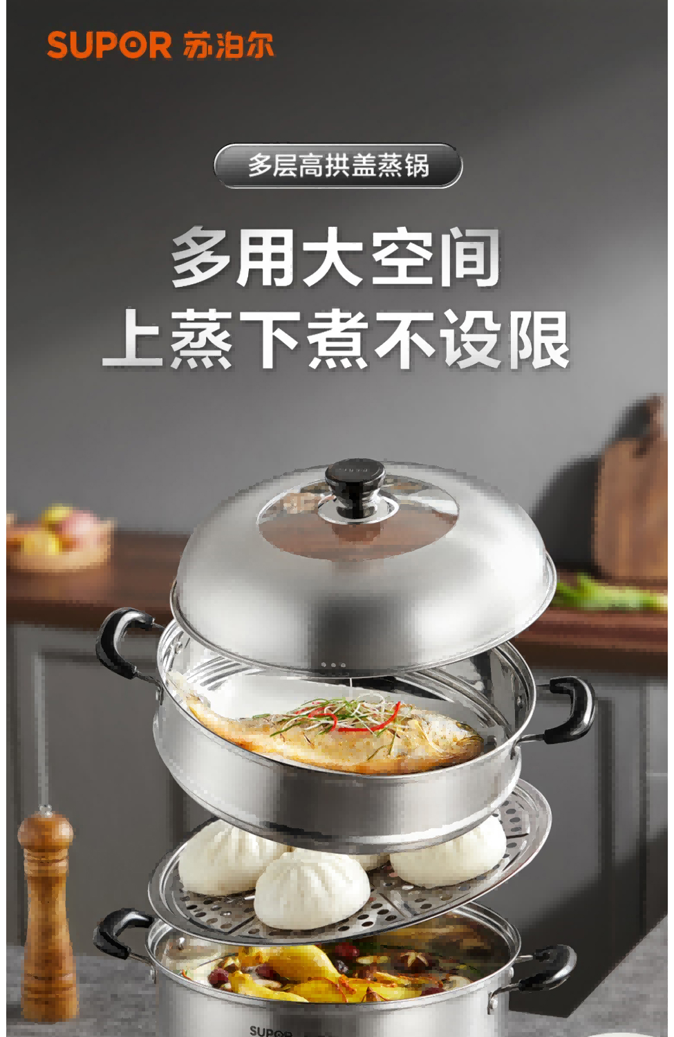SUPOR/苏泊尔30cm好帮手不锈钢双层复底蒸锅SZ30B5