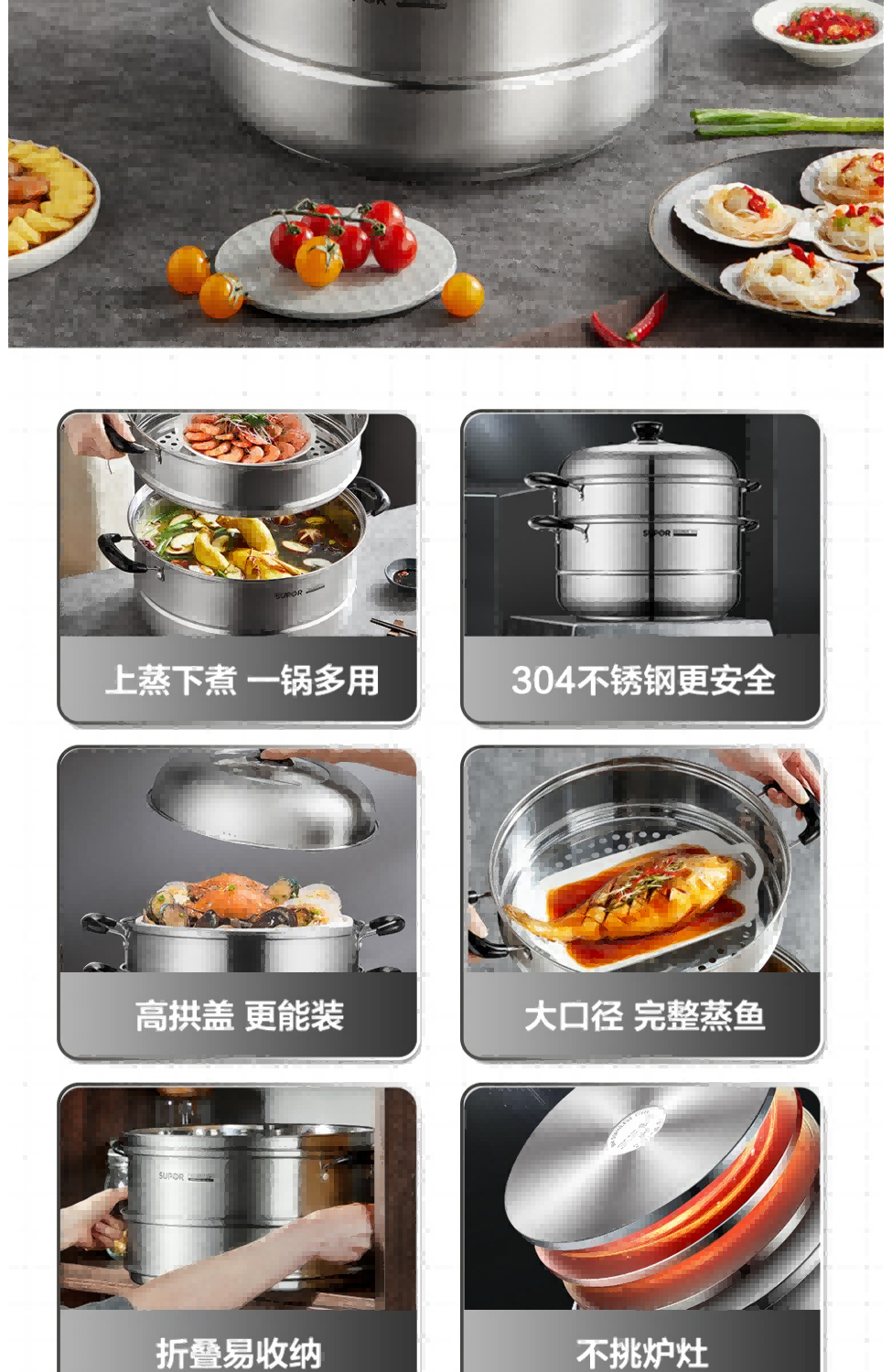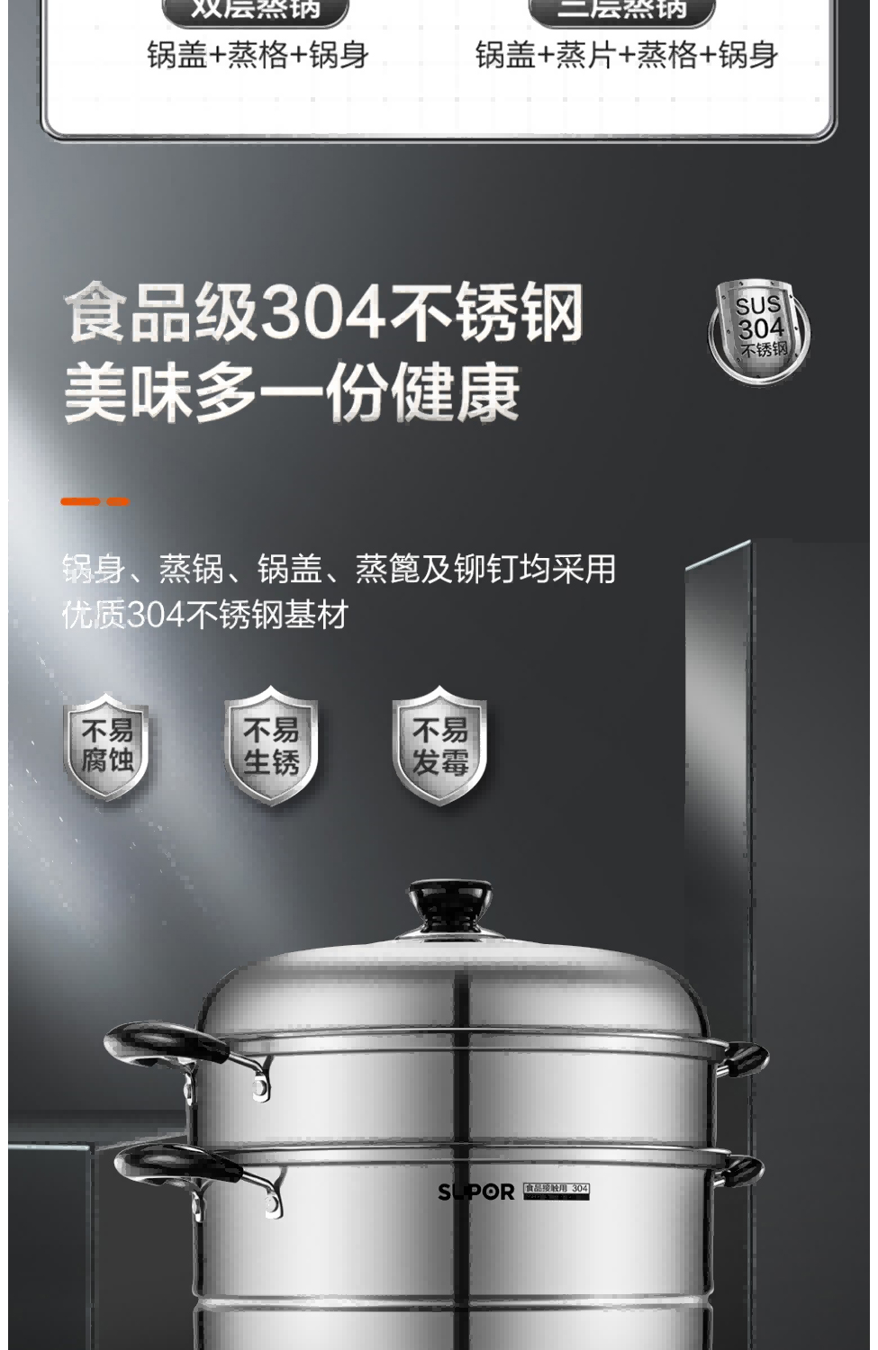 商品名称:SUPOR/苏泊尔30cm好帮手不锈钢双层复底蒸锅SZ30B5