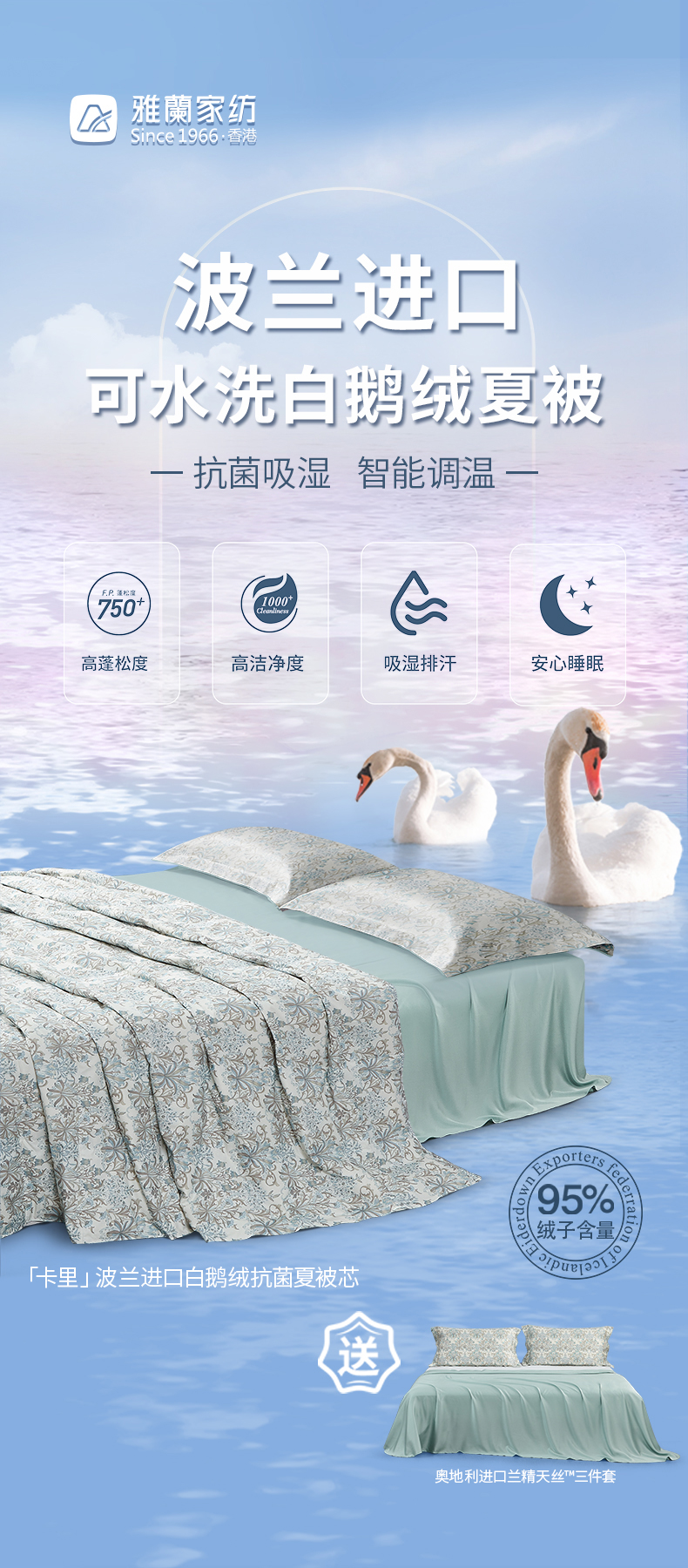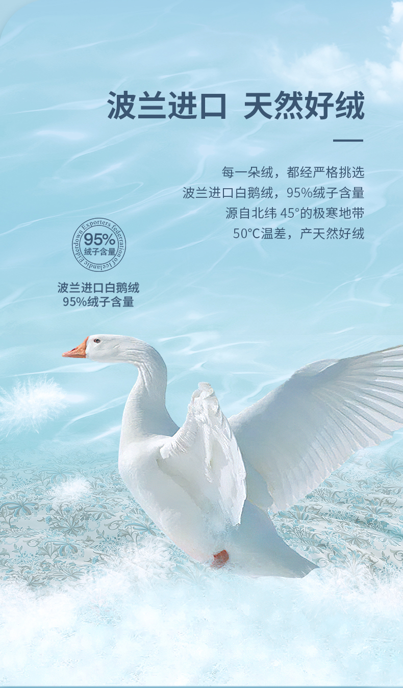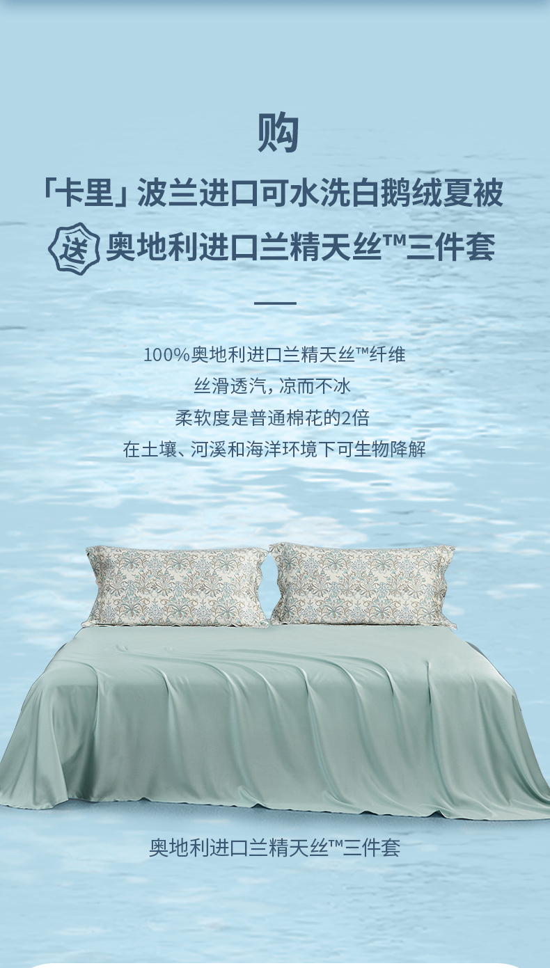 商品名称:雅兰家纺卡里波兰进口白鹅绒水洗抗菌夏被芯230*230cm 170g