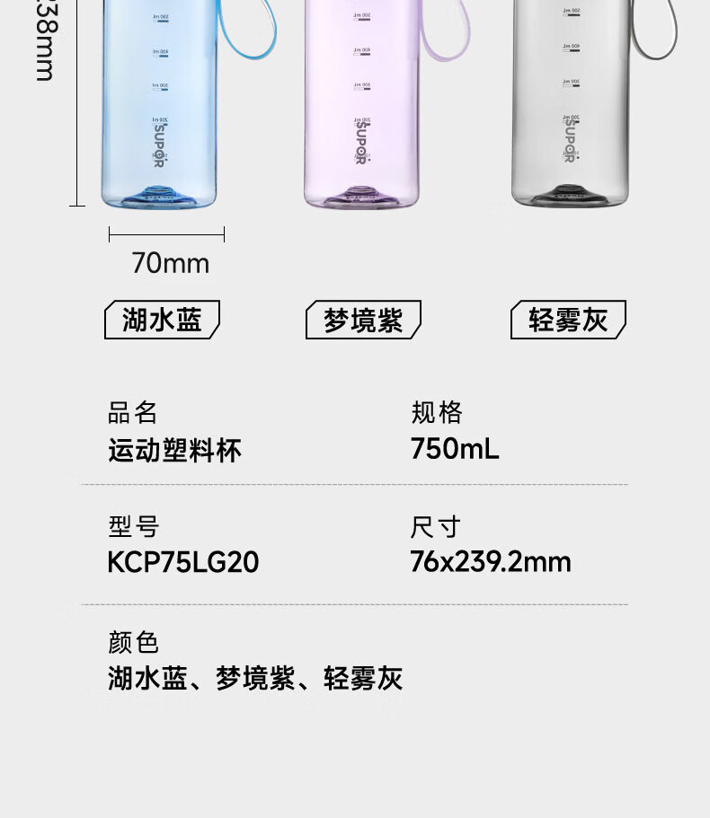 商品名称:SUPOR/苏泊尔750毫升运动塑料杯KCP75LG20