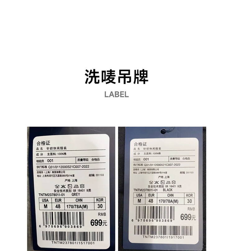 商品名称:【情侣款】小熊男装卫裤夏季裤子简约基础运动裤休闲裤情侣长裤 041153