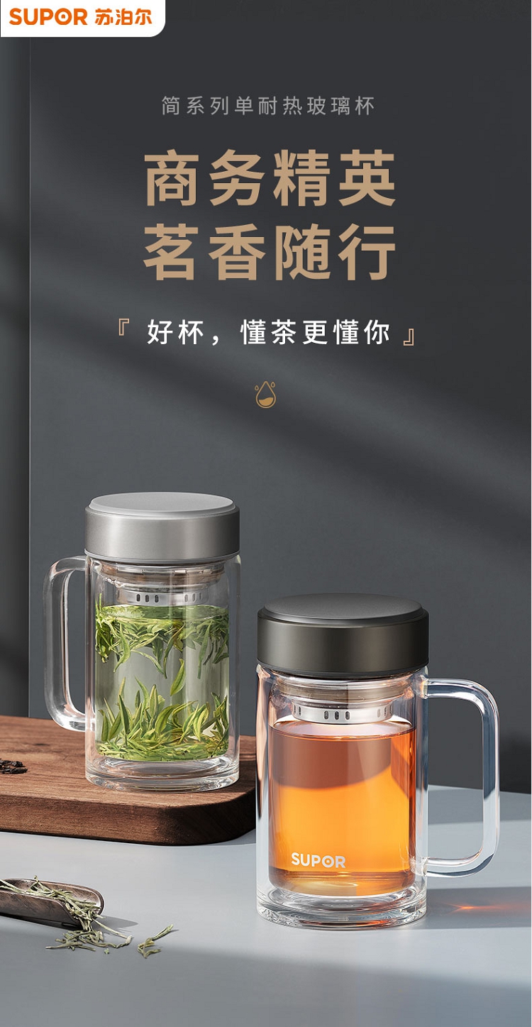 SUPOR/苏泊尔450毫升简系列耐热玻璃杯KC45HK10