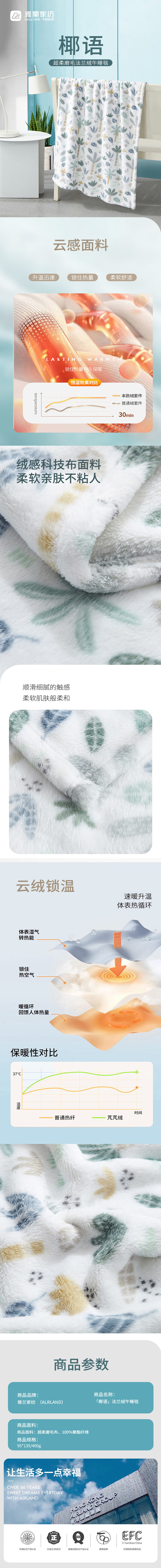 商品名称:雅兰家纺椰语超柔磨毛法兰绒午睡毯95*135cm 400g