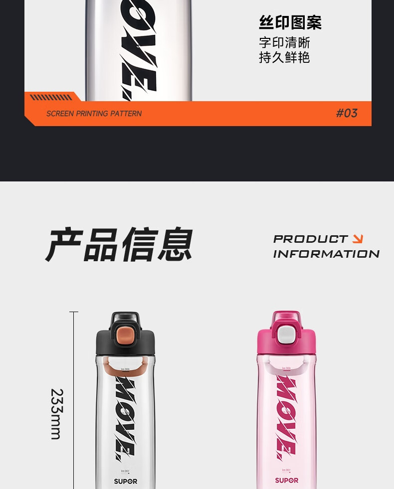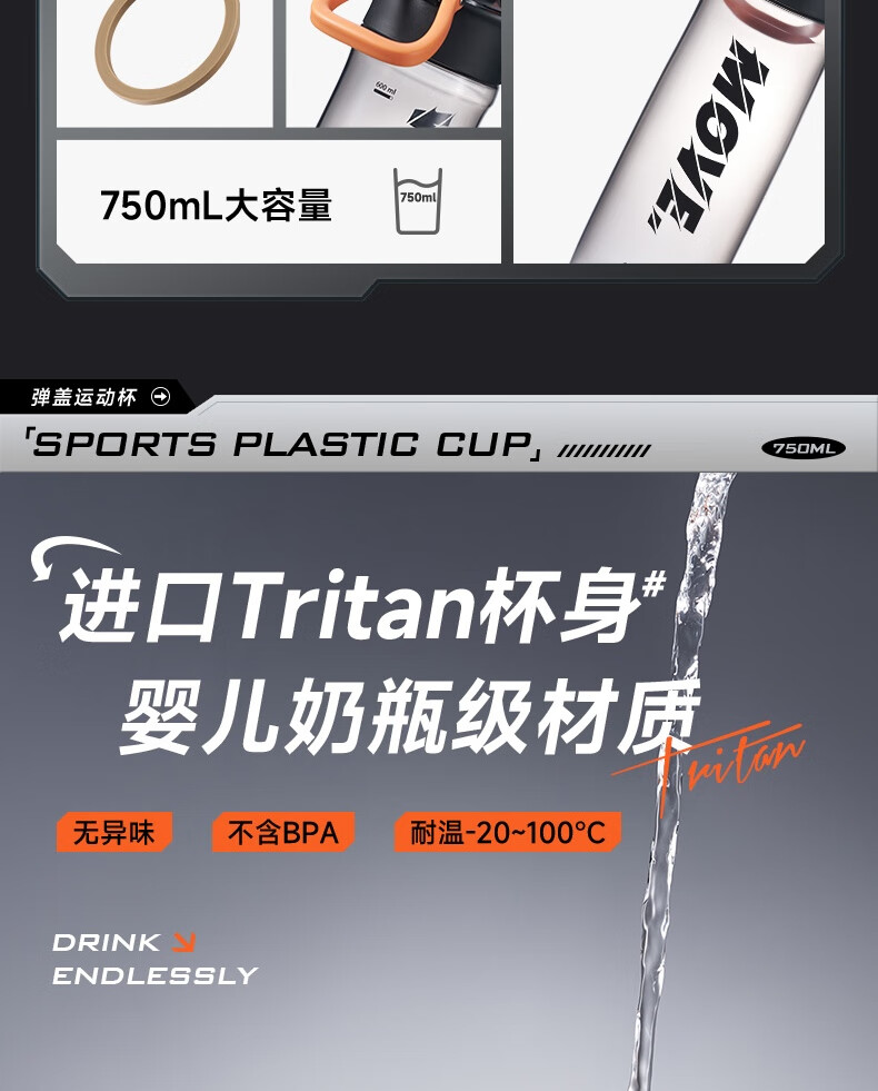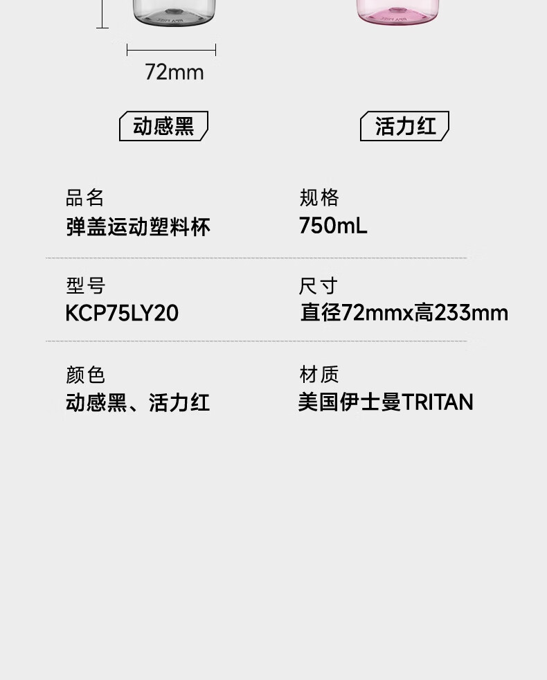 商品名称:SUPOR/苏泊尔750毫升弹盖运动塑料杯KCP75LY20