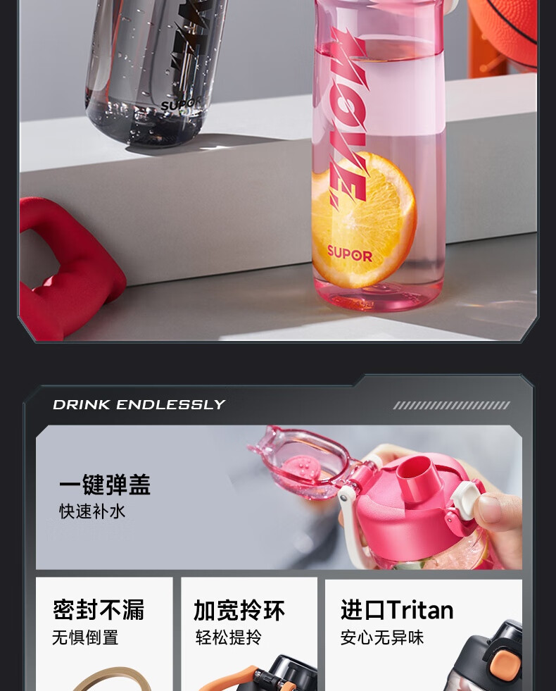 SUPOR/苏泊尔750毫升弹盖运动塑料杯KCP75LY20