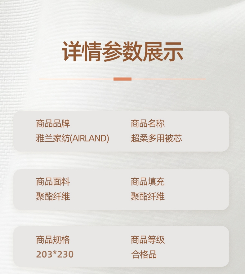 商品名称:雅兰家纺超柔多用被芯203*230cm 460g