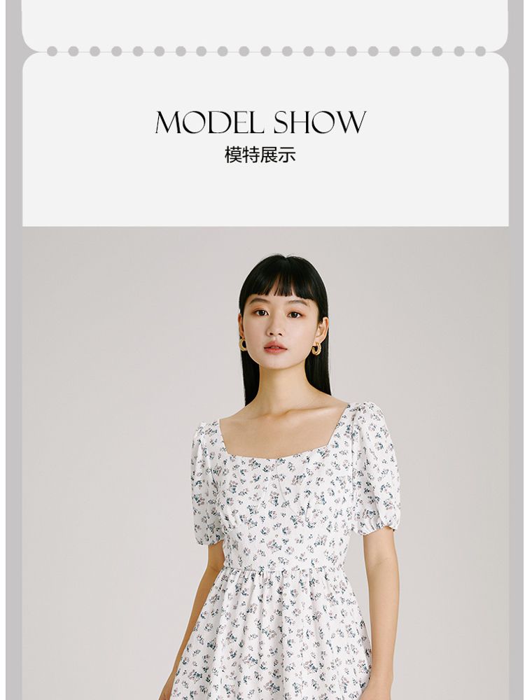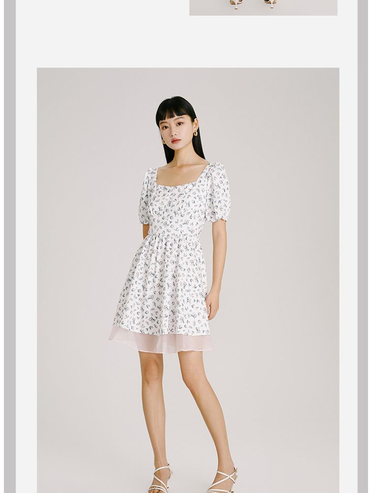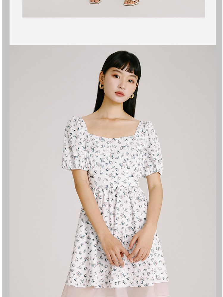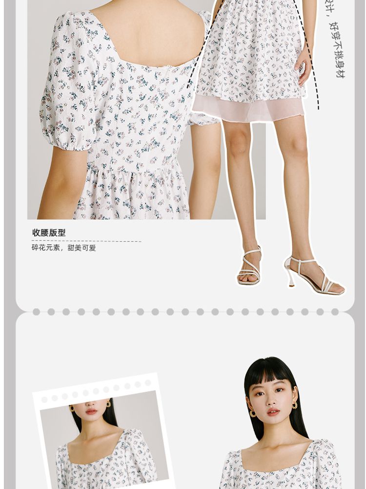 商品名称:【法式甜美浪漫】夏款方领泡泡袖印花碎花连衣裙 827153