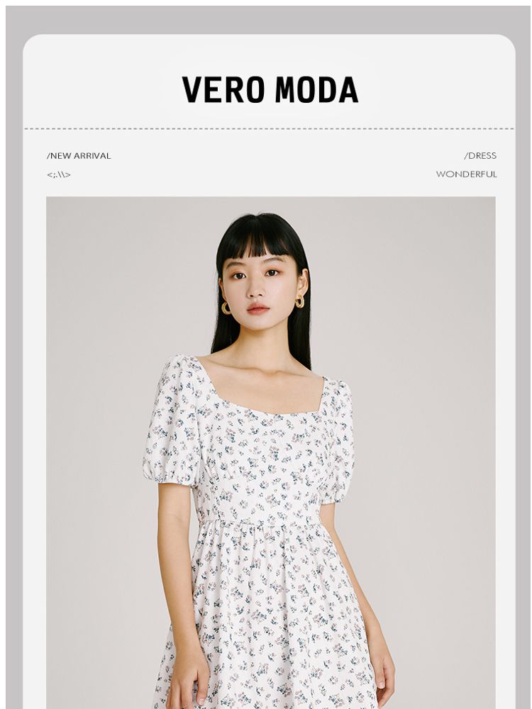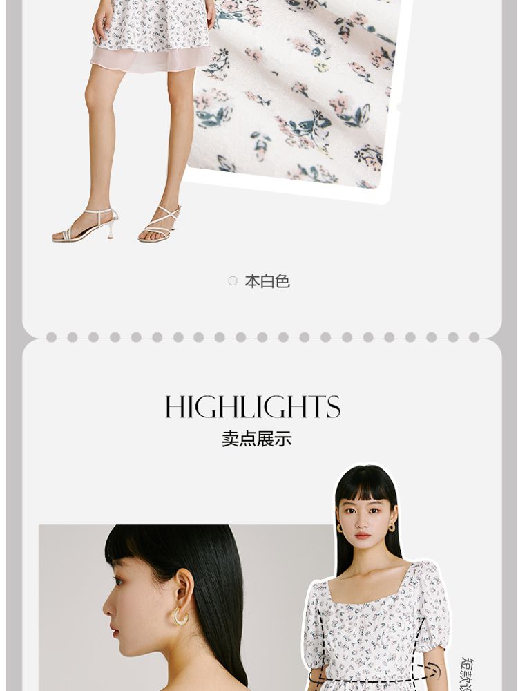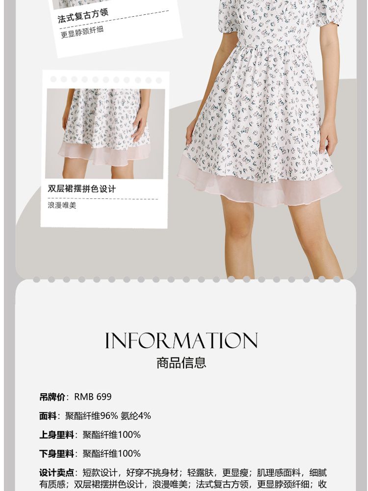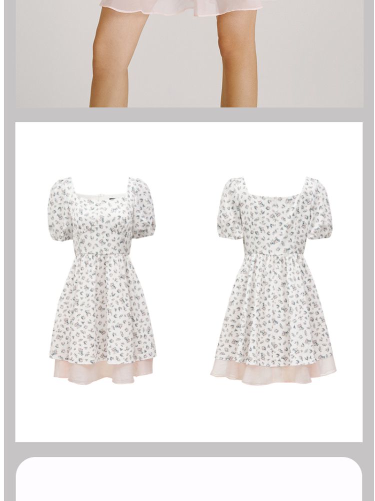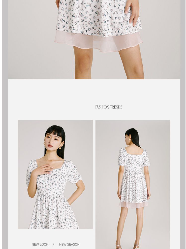 商品名称:【法式甜美浪漫】夏款方领泡泡袖印花碎花连衣裙 827153