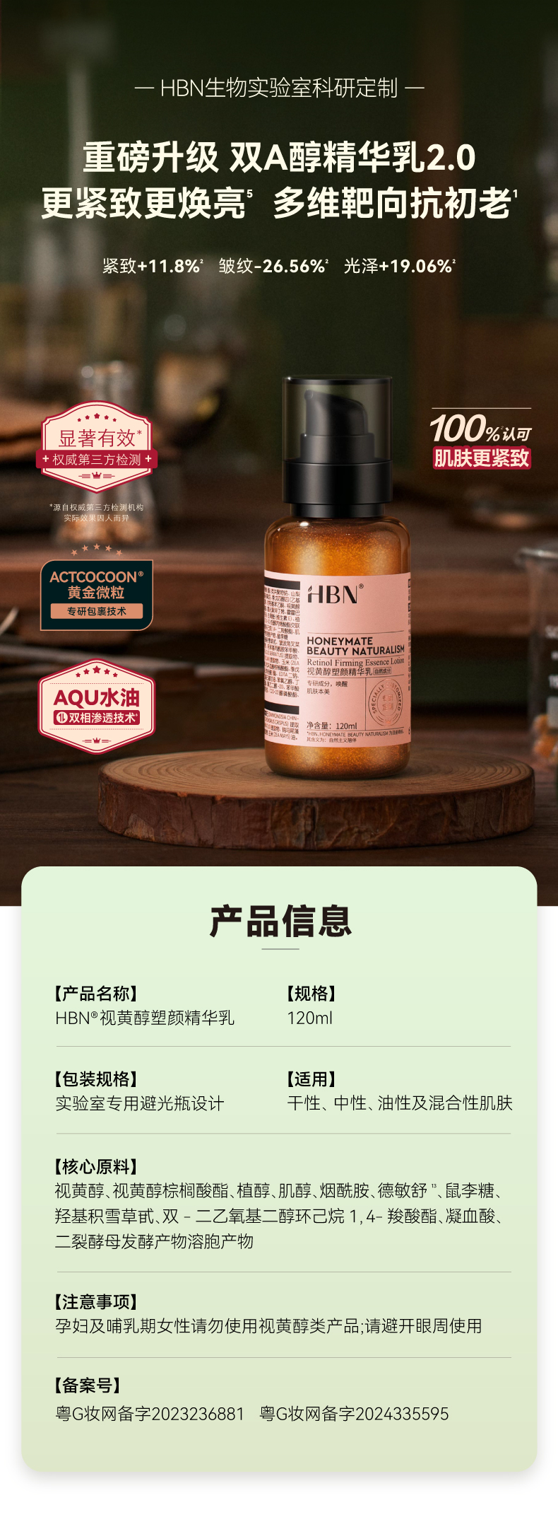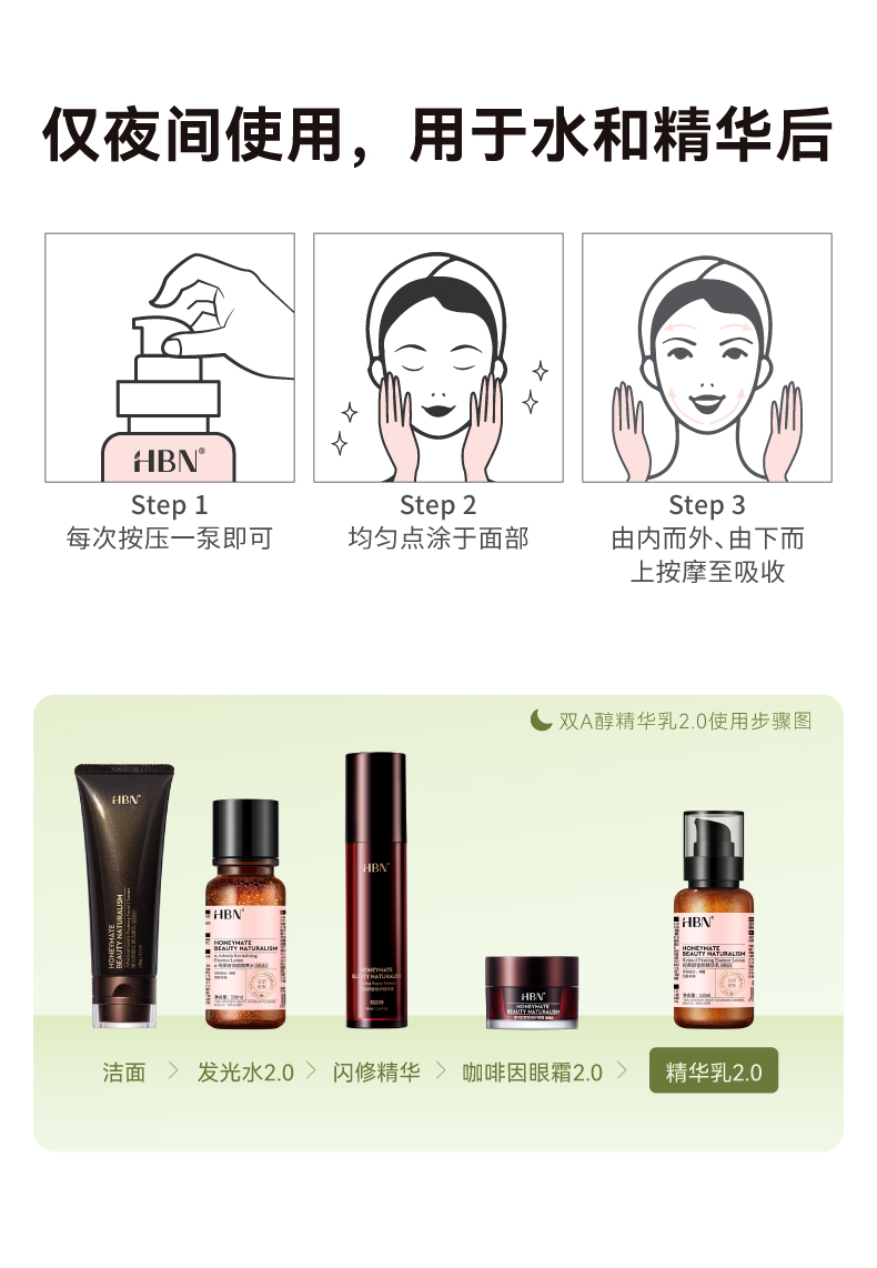 商品名称:HBN视黄醇塑颜精华乳2.0 120ml JHR0701