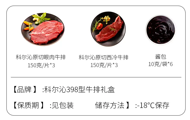 商品名称:Kerchin/科尔沁牛排礼盒398型960g