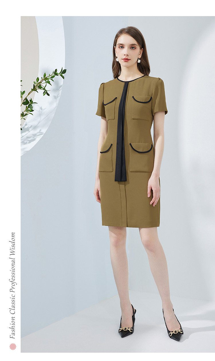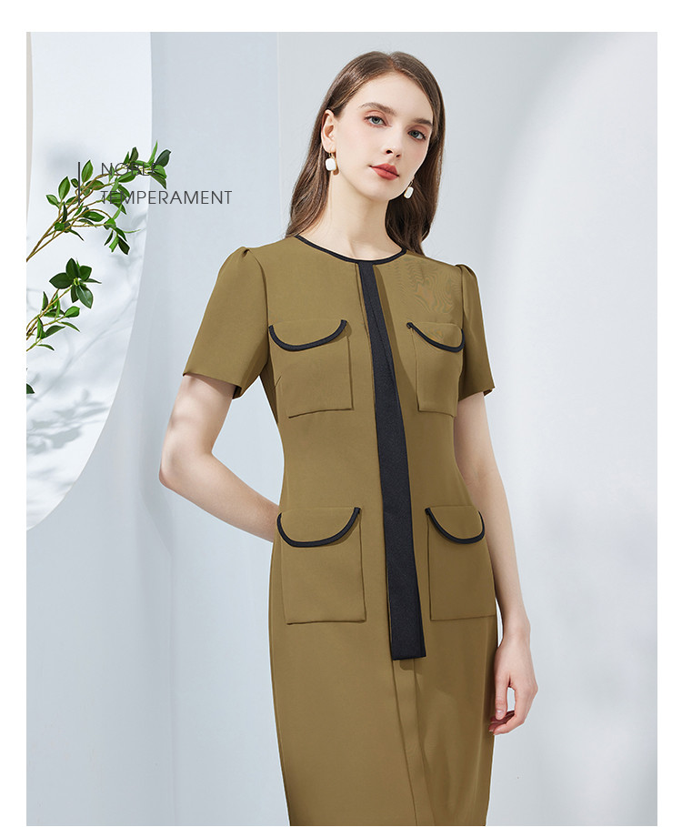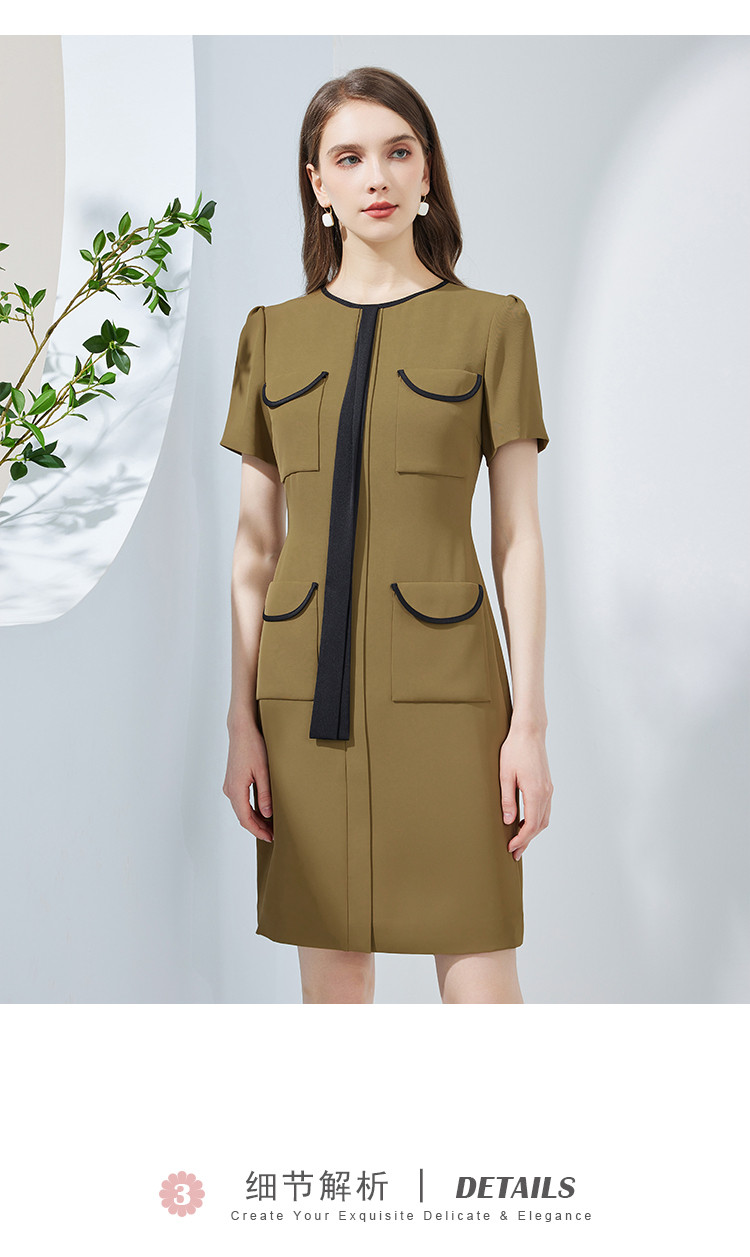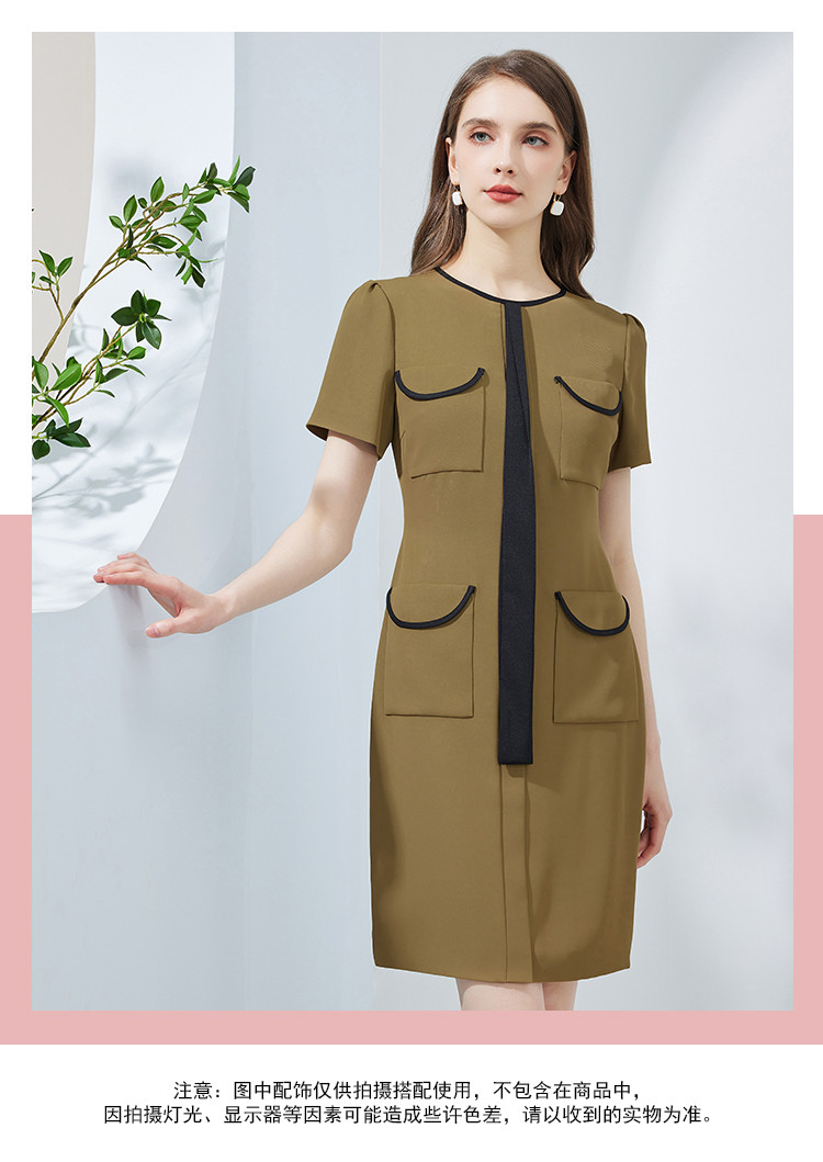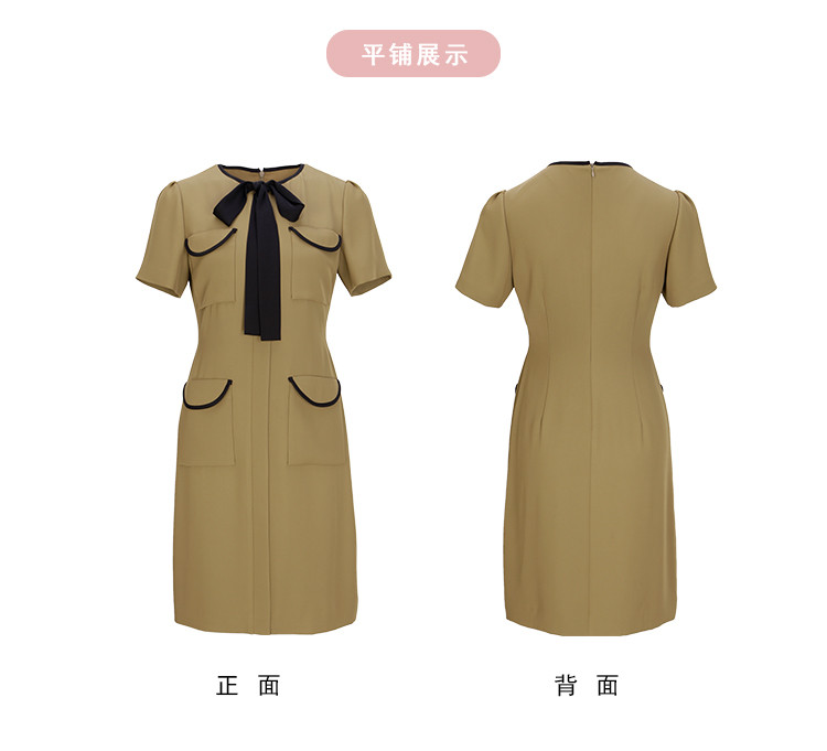 商品名称:撞色小香风飘带可悬垂可蝴蝶结修身显瘦OL气质连衣裙 763167