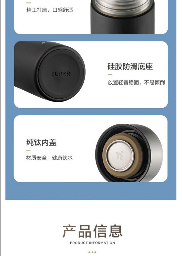 商品名称:SUPOR/苏泊尔450毫升轻音钛保温杯KC45HZ11
