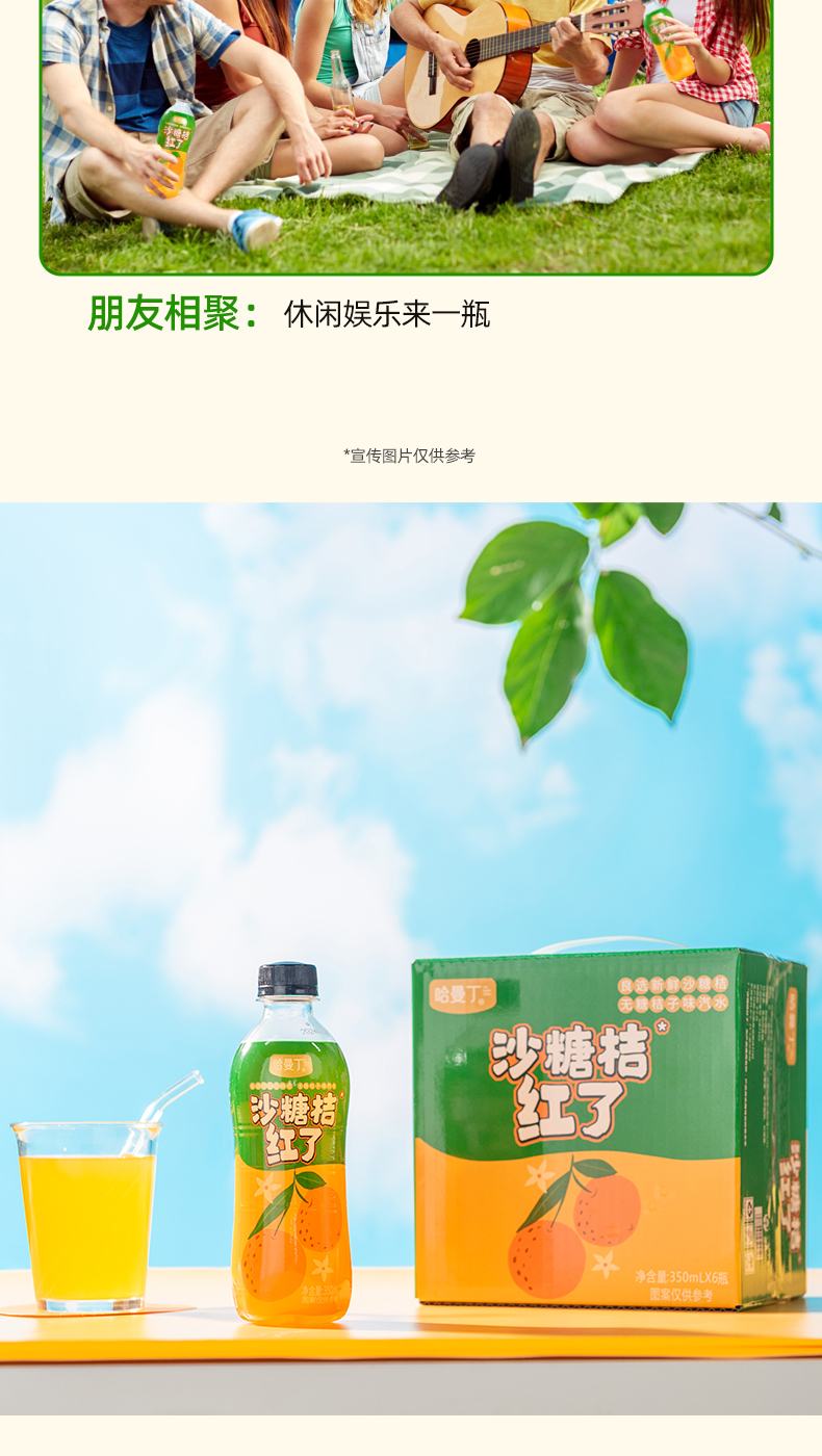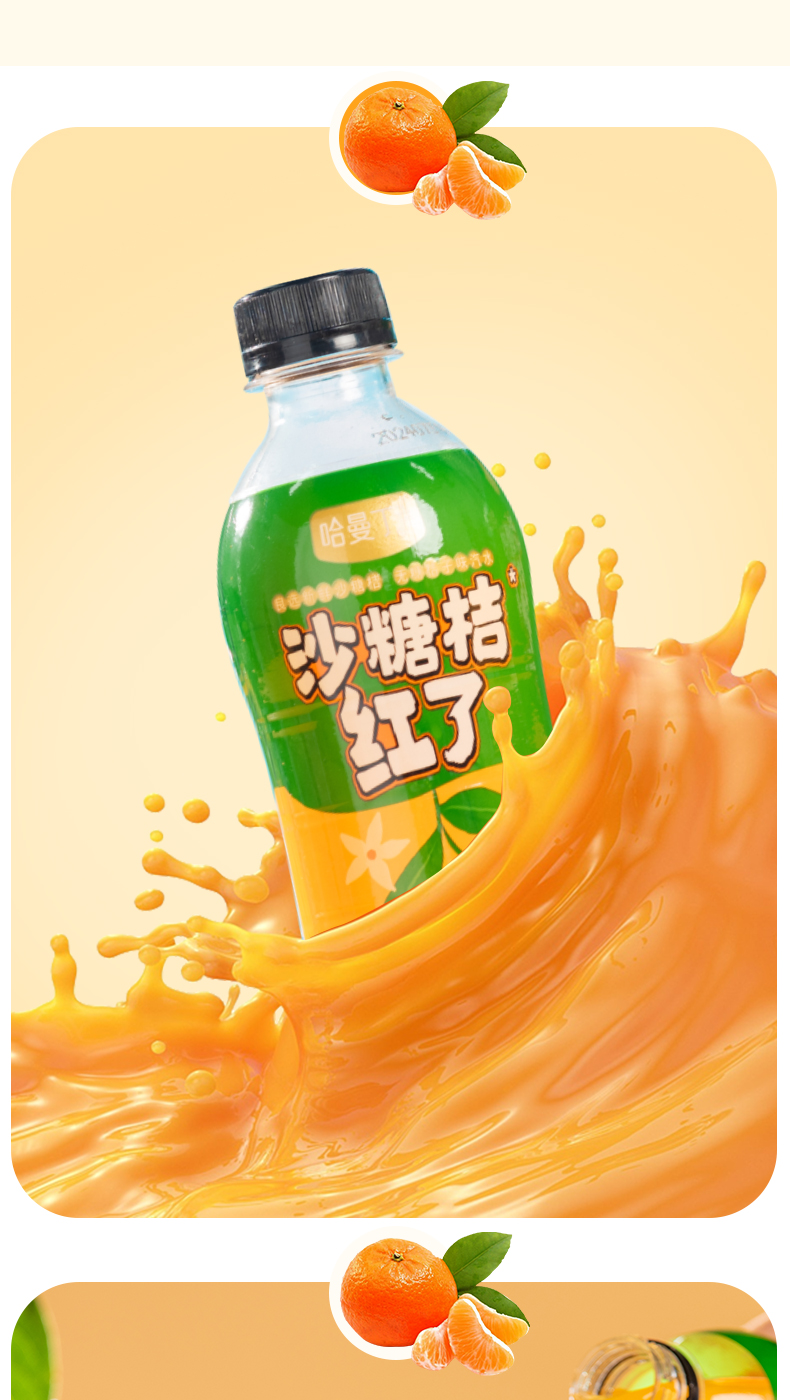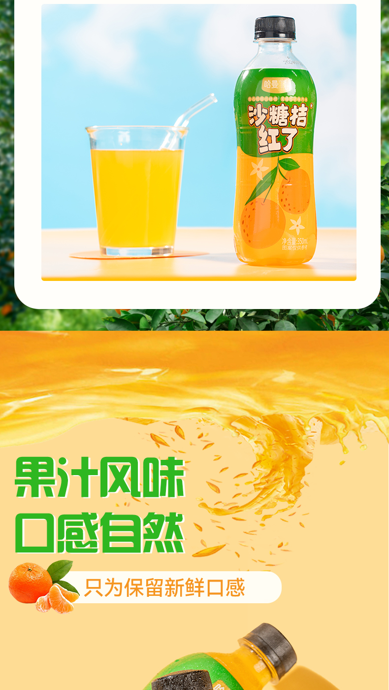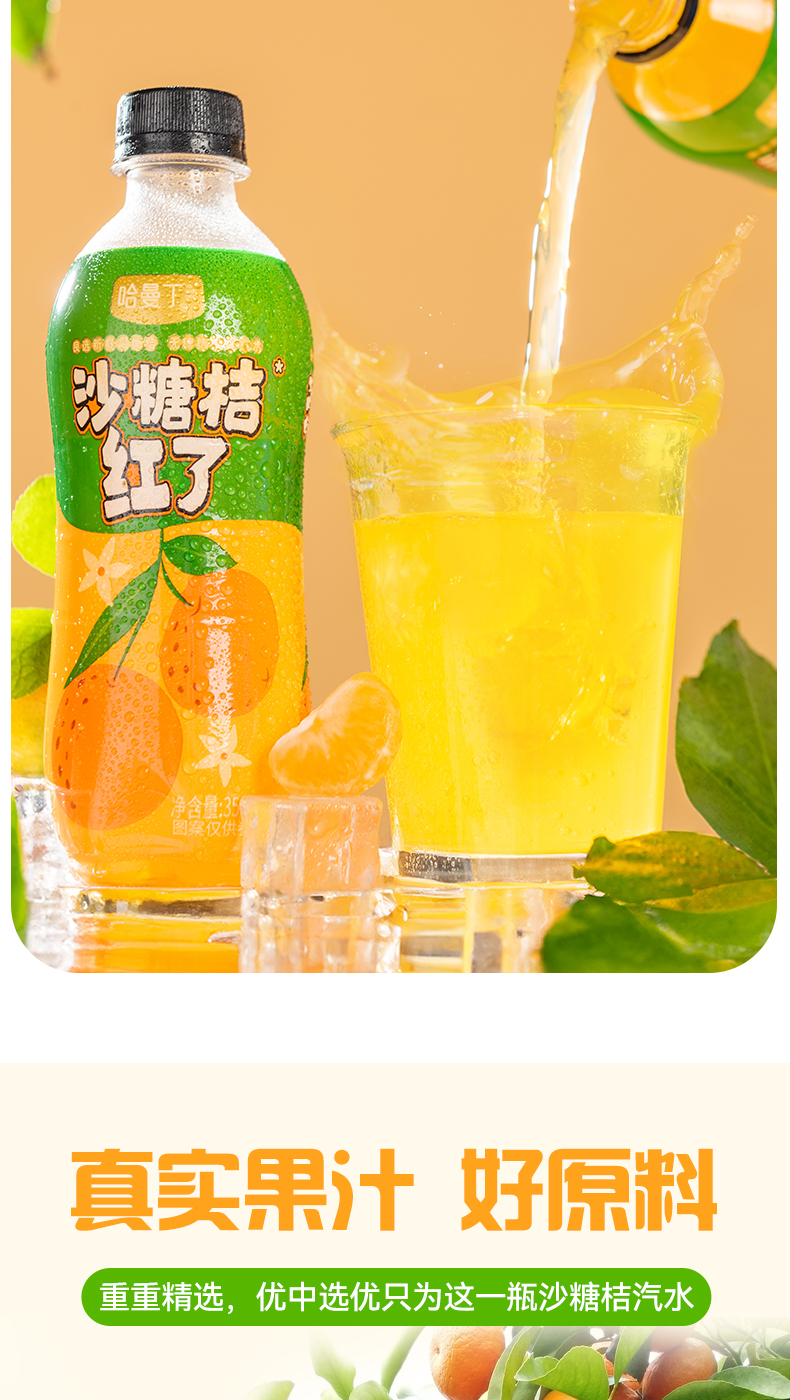 商品名称:哈曼丁沙糖桔红了桔子味汽水整箱350ml*6瓶