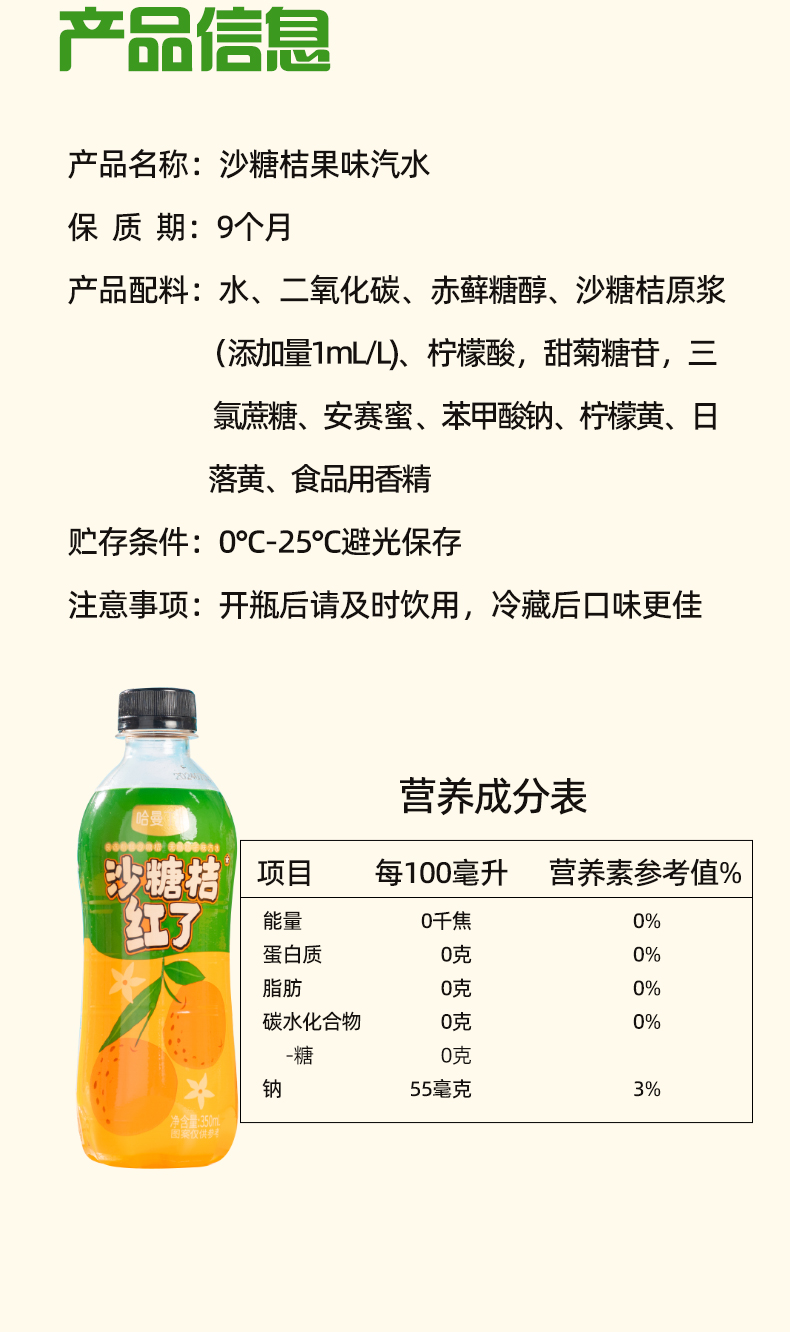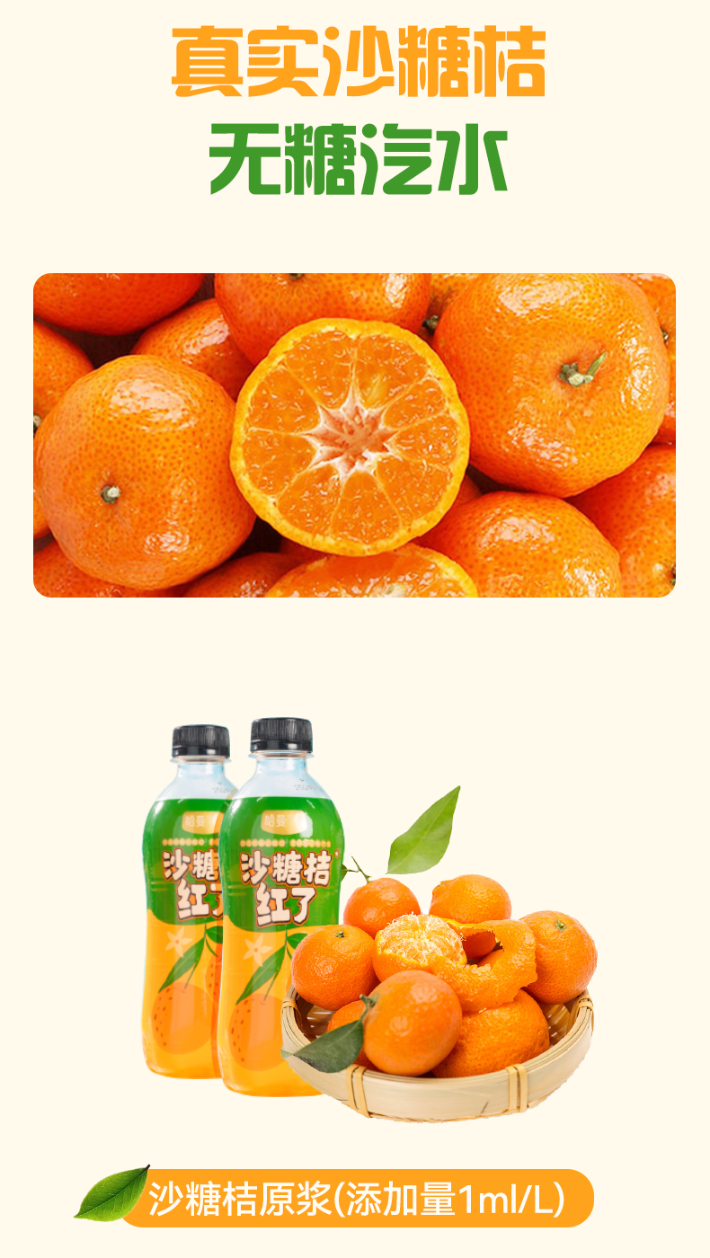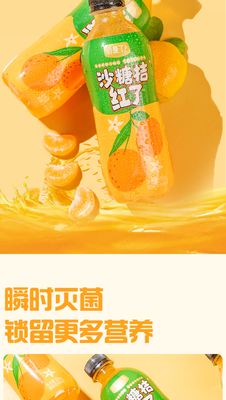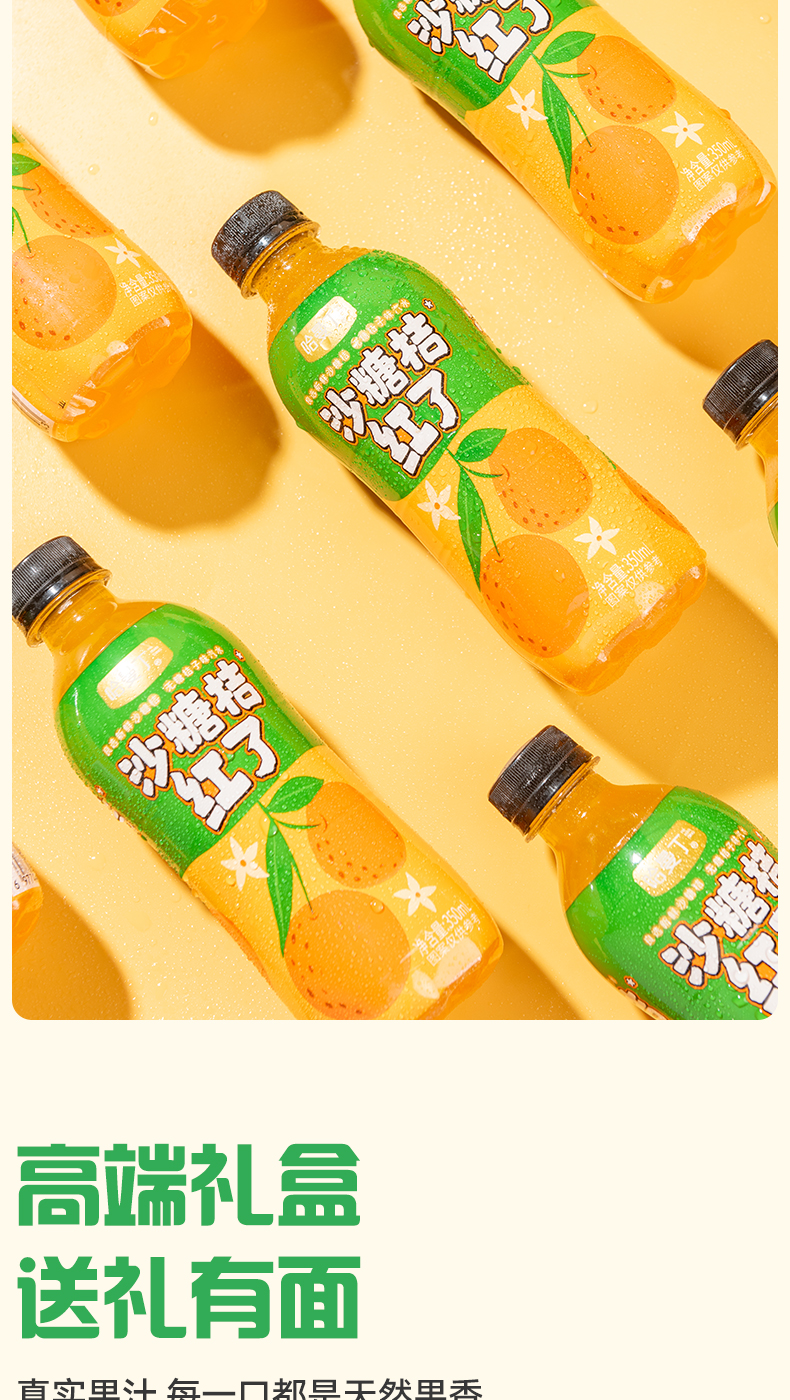 商品名称:哈曼丁沙糖桔红了桔子味汽水整箱350ml*6瓶