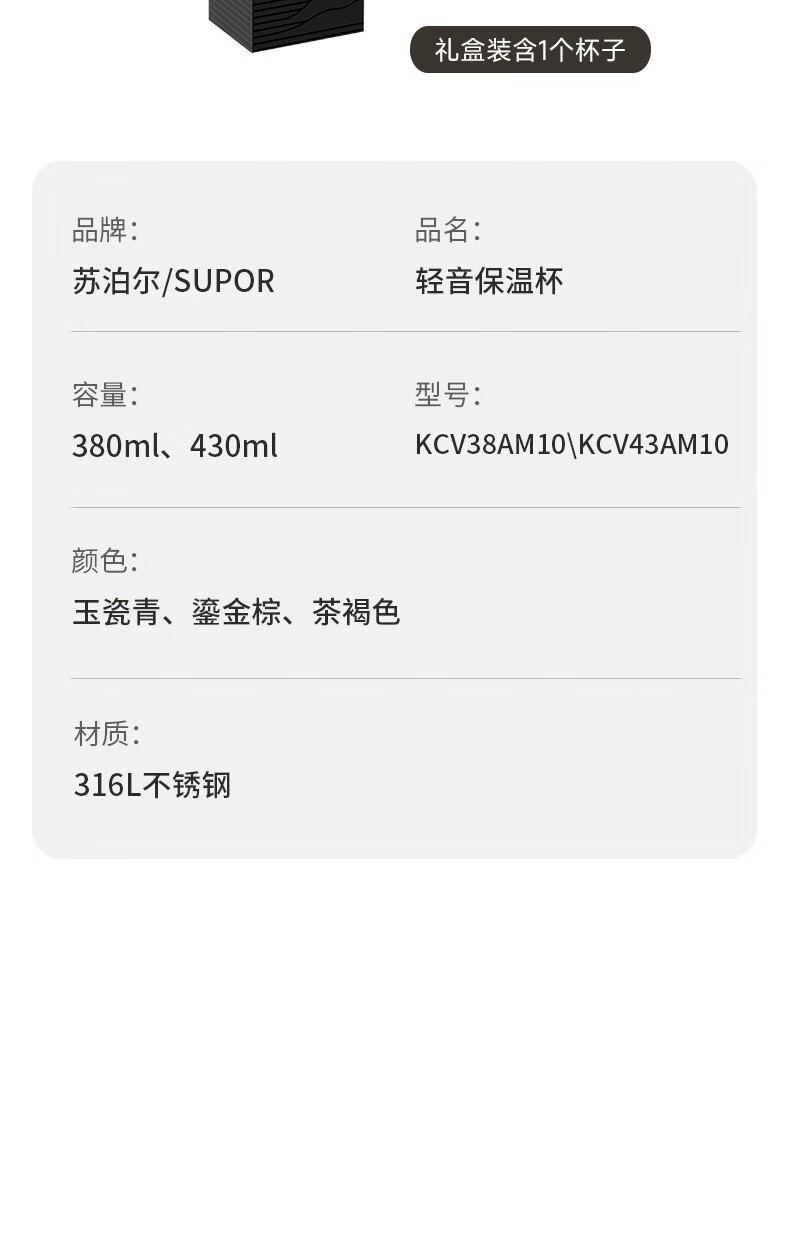 商品名称:SUPOR/苏泊尔轻音保温杯KCV43AN10