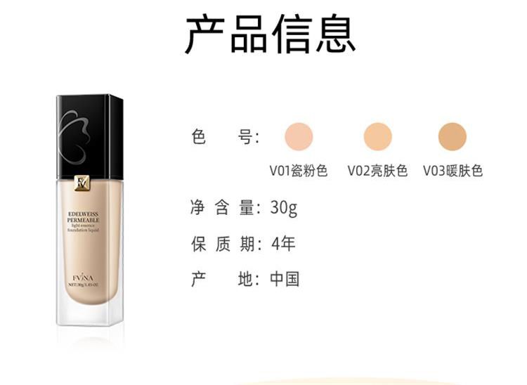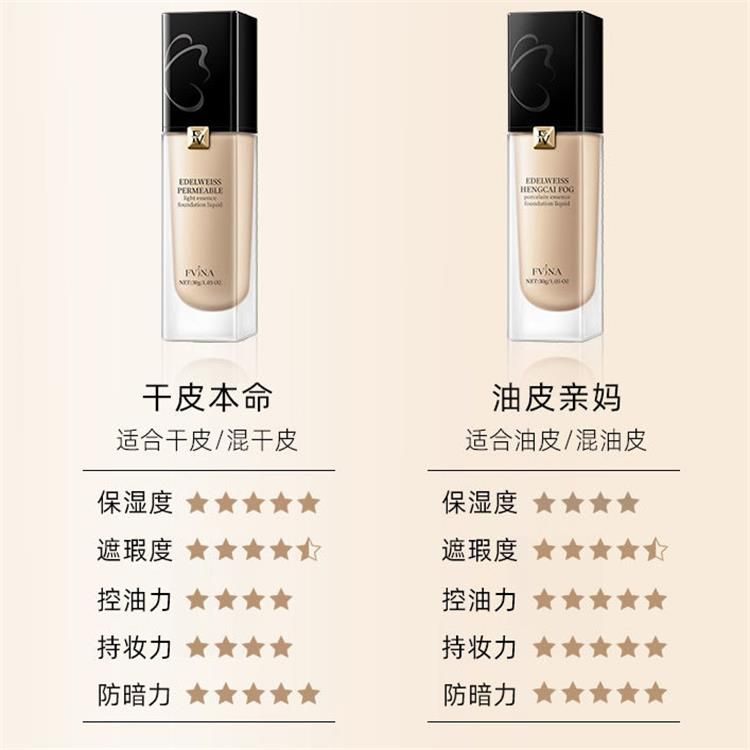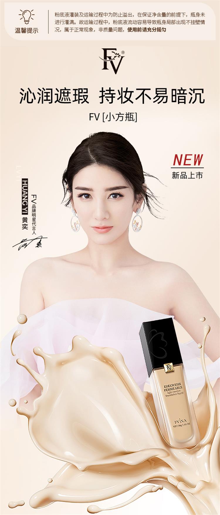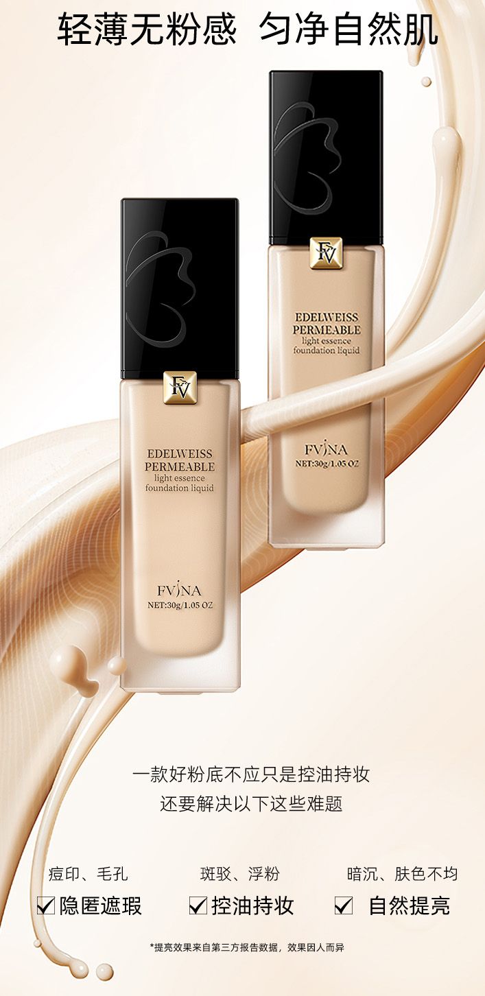 商品名称:FV 雪绒花沁透水光精华粉底液 30g 养肤混干皮遮瑕保湿 赠粉扑*1+卸妆湿巾30片*1