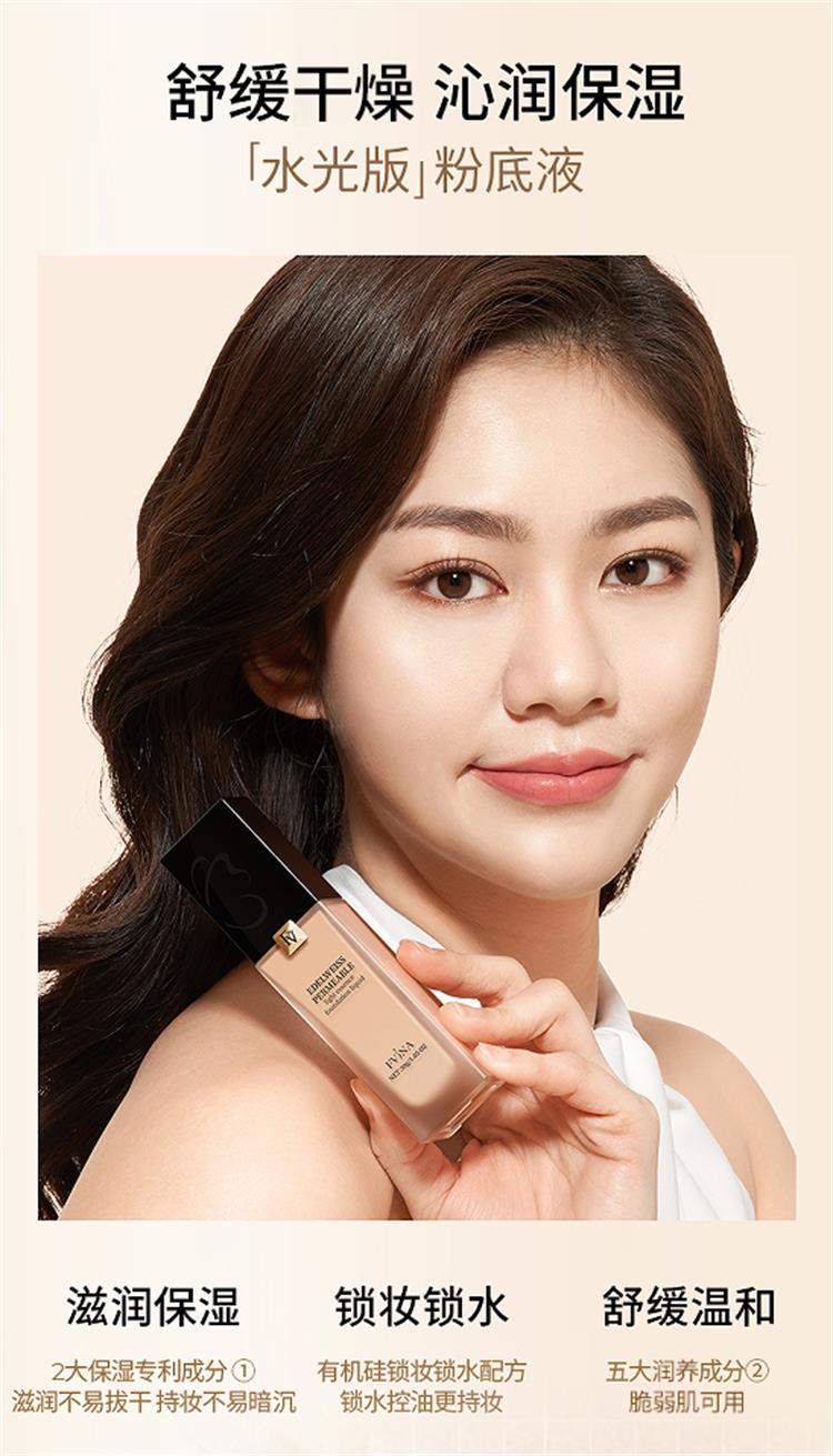 FV 雪绒花沁透水光精华粉底液 30g 养肤混干皮遮瑕保湿 赠粉扑*1+卸妆湿巾30片*1