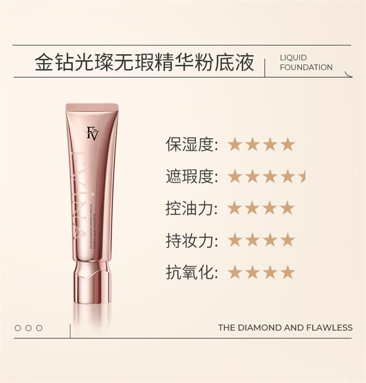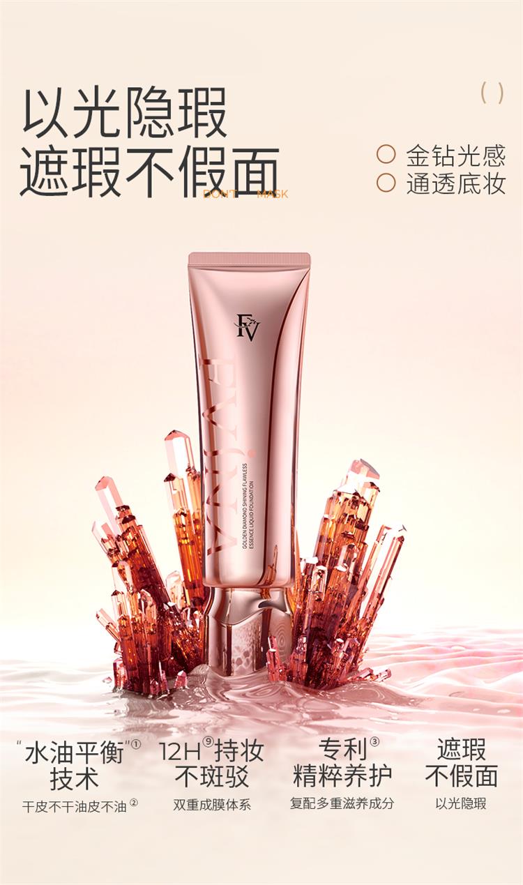 商品名称:FV 金钻遮瑕精华粉底液金管持久不脱妆bb霜30g 赠正装*1+粉扑*2+8g防晒粉底液中样*2