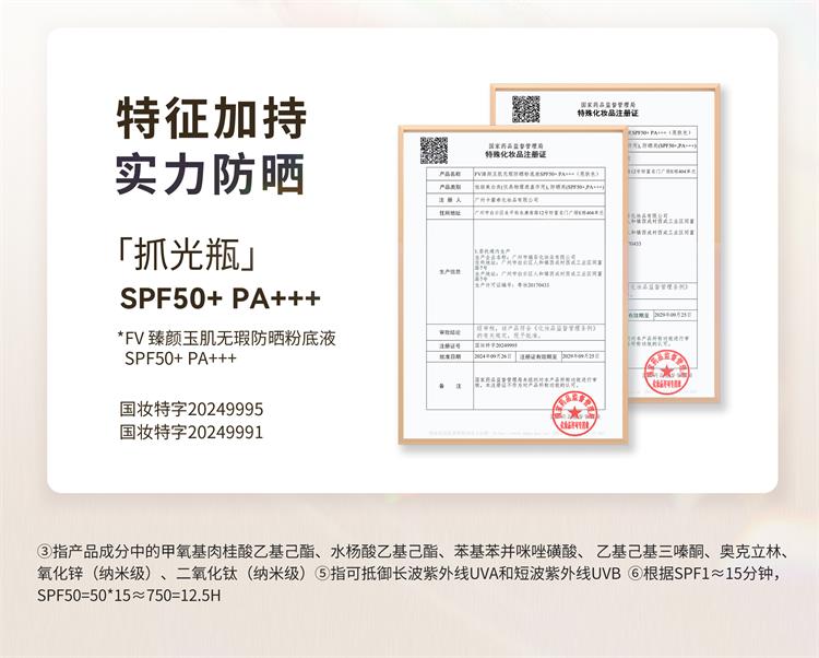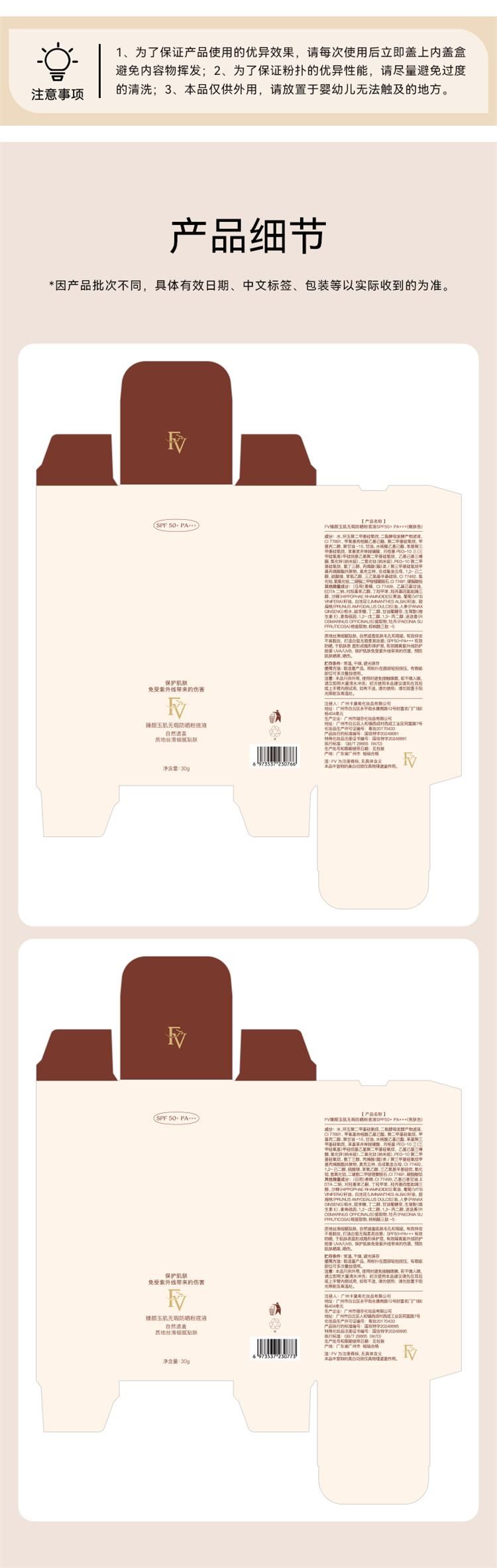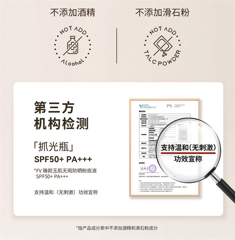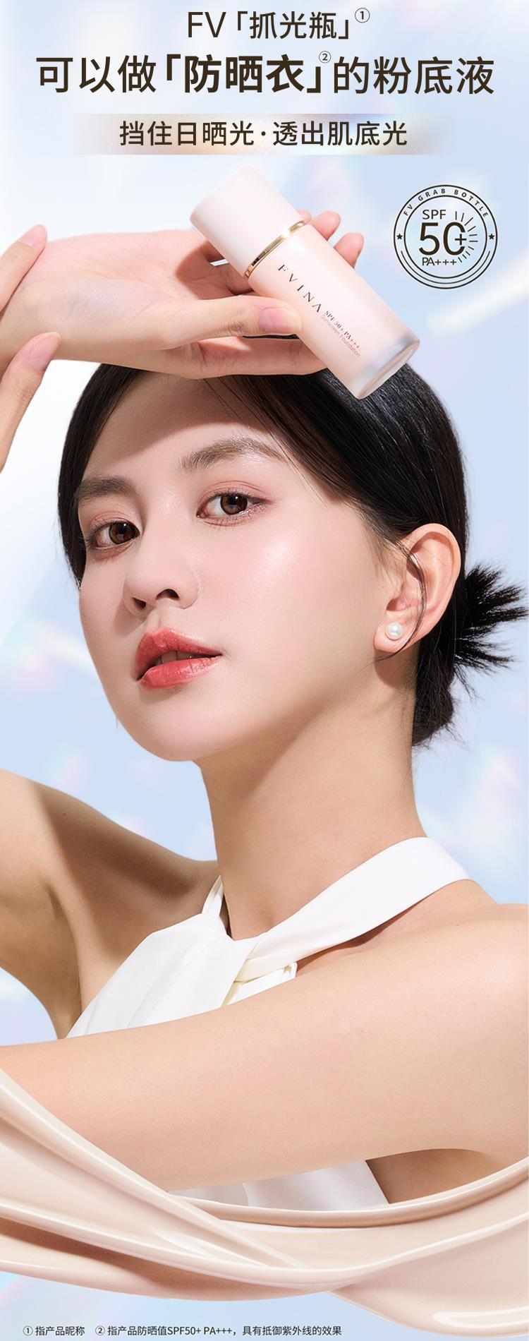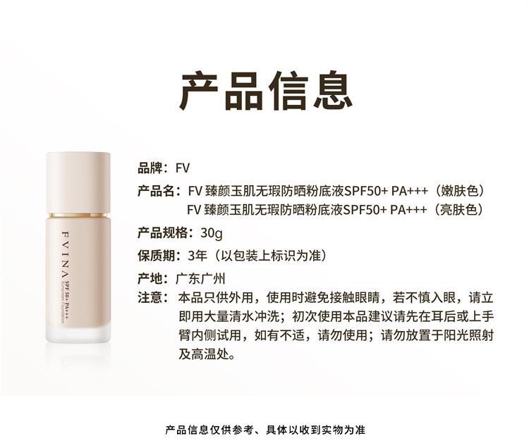 商品名称:FV 臻颜玉肌无瑕防晒粉底液 30g 防晒持妆遮瑕持久不脱妆 赠粉扑*1+8g中样*2