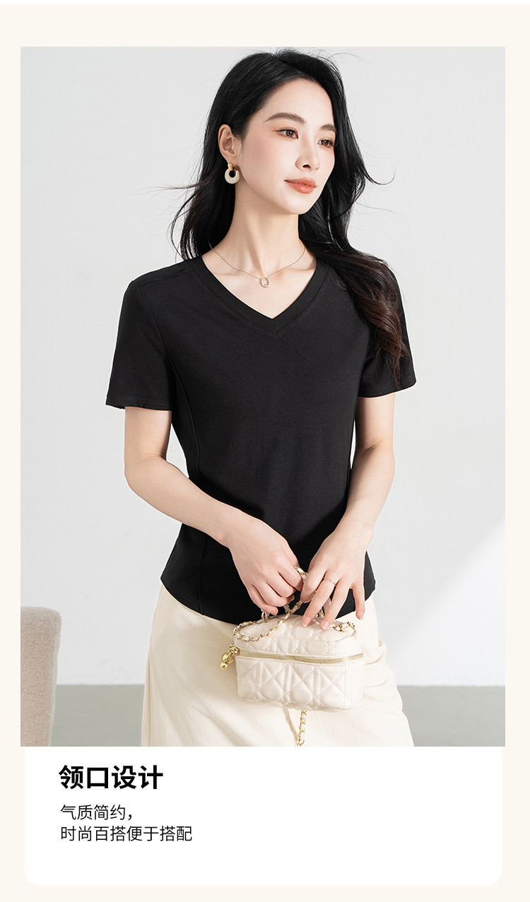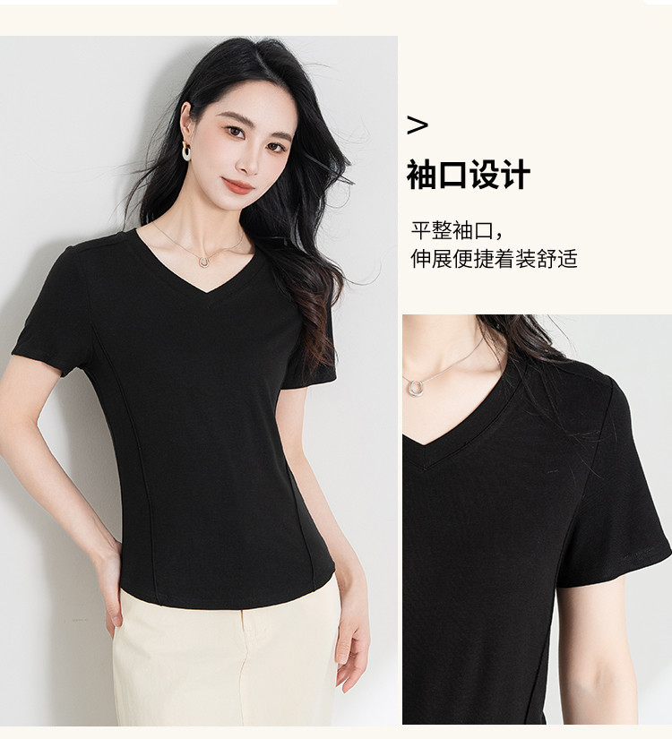 【三色可选】正肩t恤女显瘦2025夏季时尚鱼骨收腰短袖上衣 586655