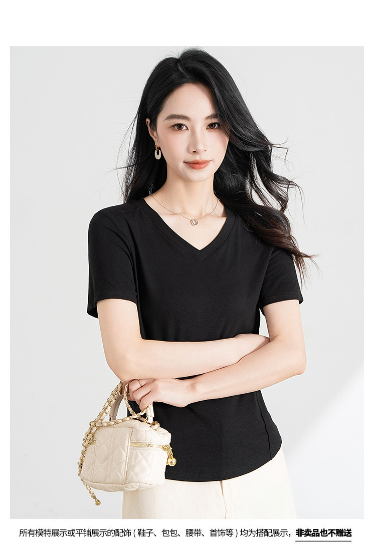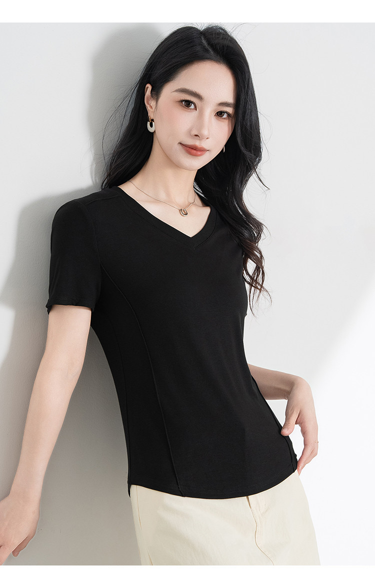 商品名称:【三色可选】正肩t恤女显瘦2025夏季时尚鱼骨收腰短袖上衣 586655