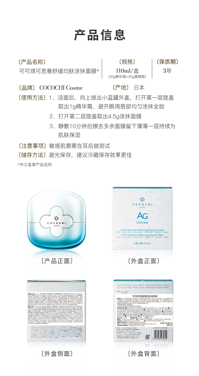 商品名称:cocochi AG 抗糖小蓝罐涂抹面膜 110g 补水舒缓干敏修护屏障强化抵御