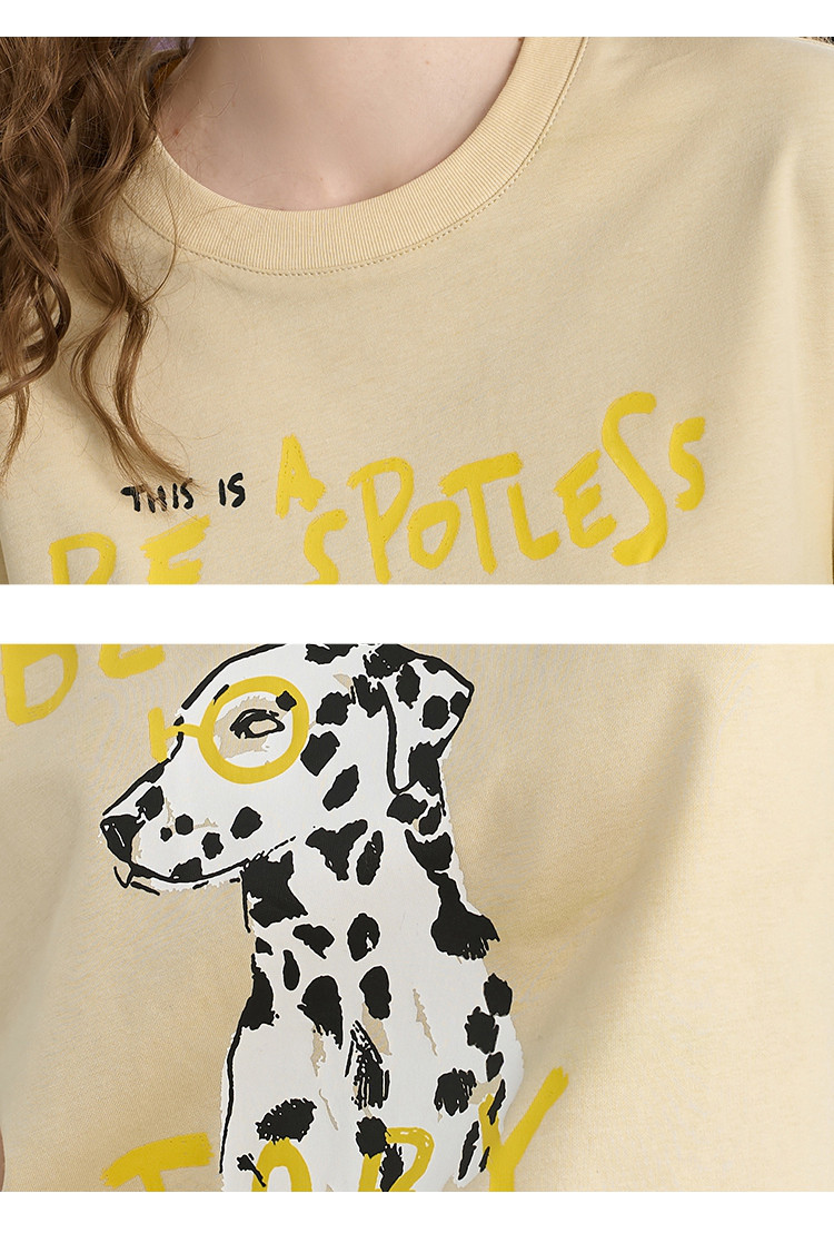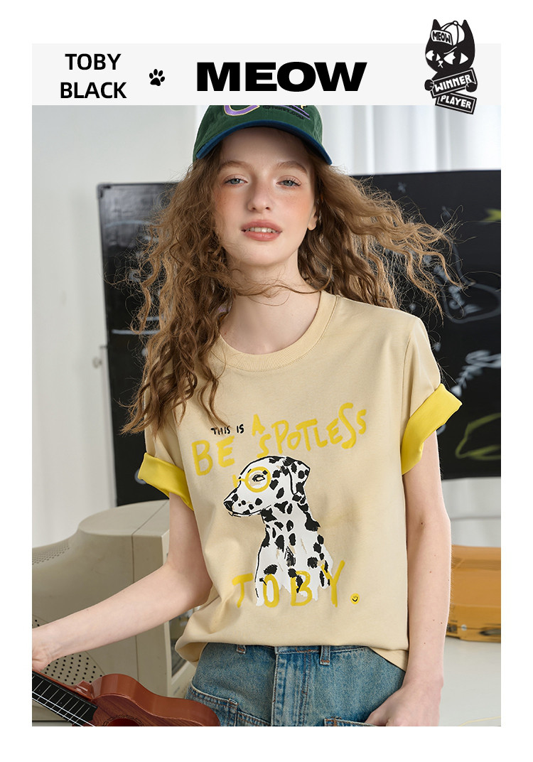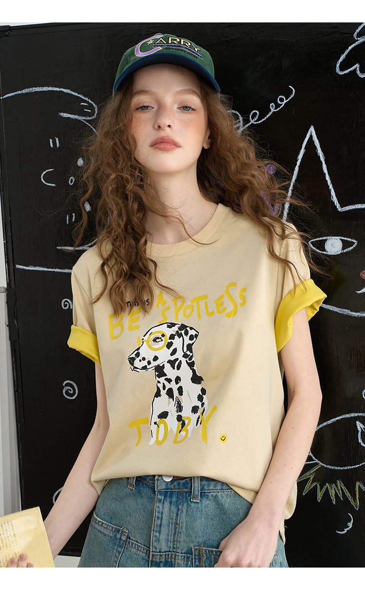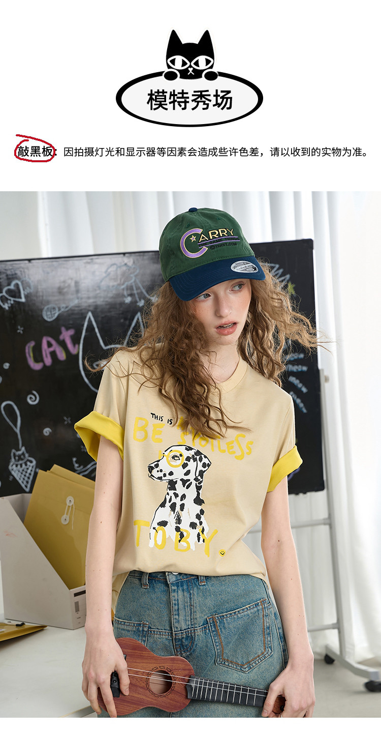 商品名称:设计感双色撞色圆领印花短袖上衣2025夏季百搭休闲女式T恤 377693