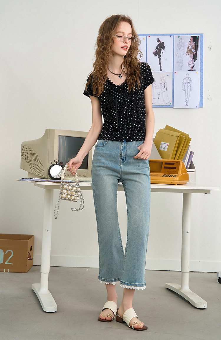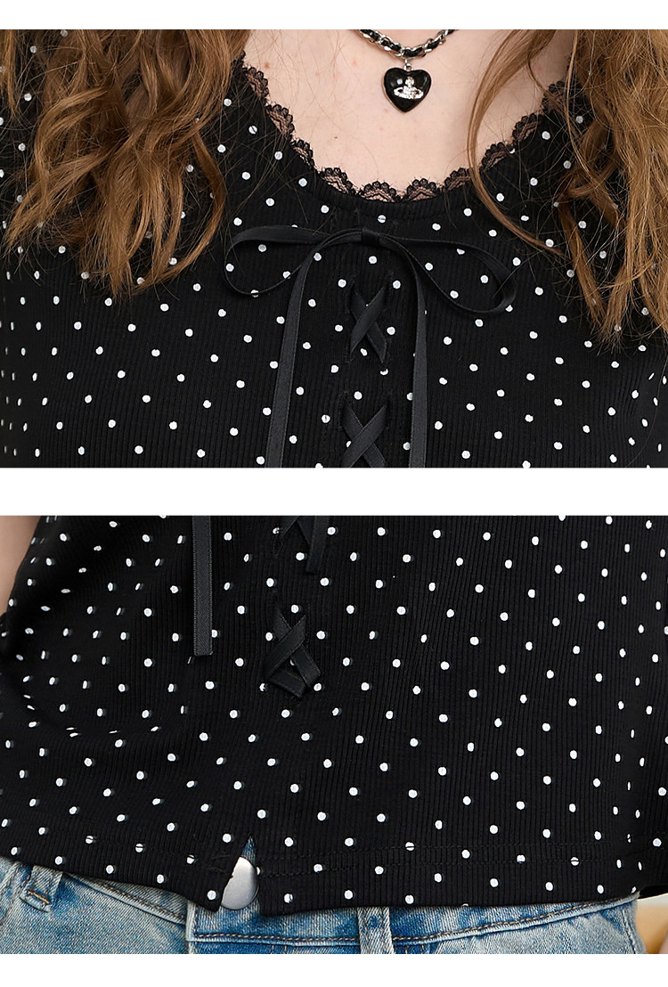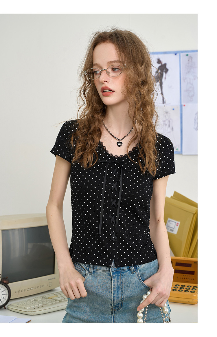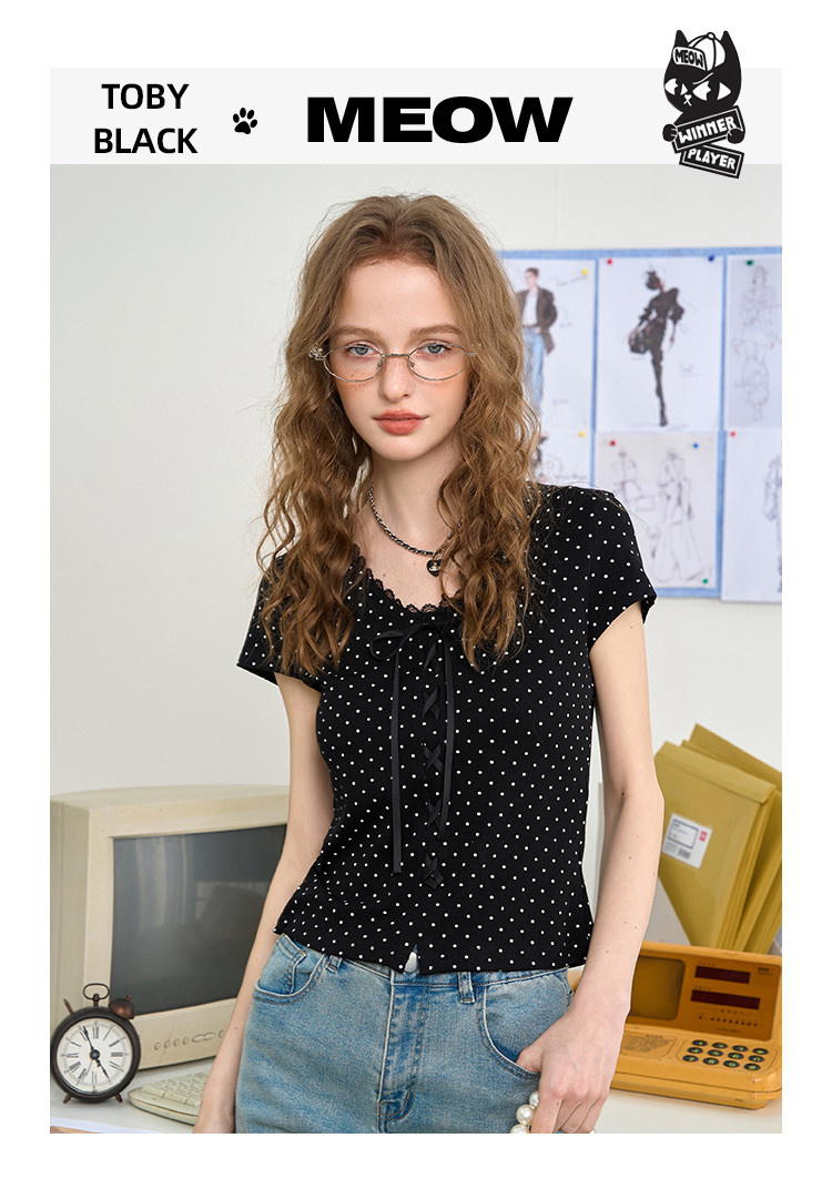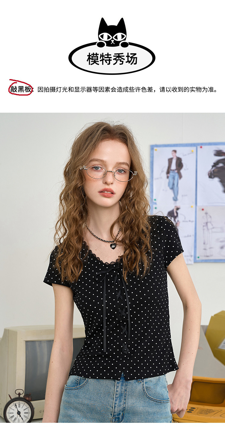 商品名称:针织印花甜酷抽绳蝴蝶结短袖上衣2025夏季百搭休闲女式T恤 971741