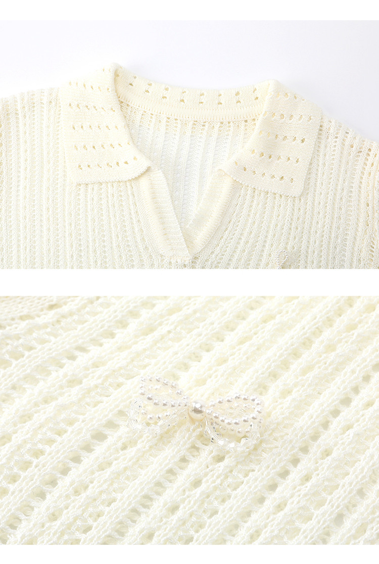 商品名称:气质镂空针织V领显瘦罩衫2025夏季百搭休闲女式针织衫 810141