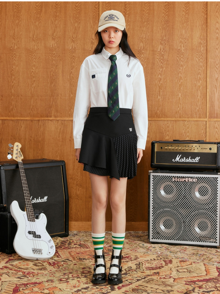 商品名称:小熊秋冬学院风时尚潮流拼接不规则半身裙女 960897