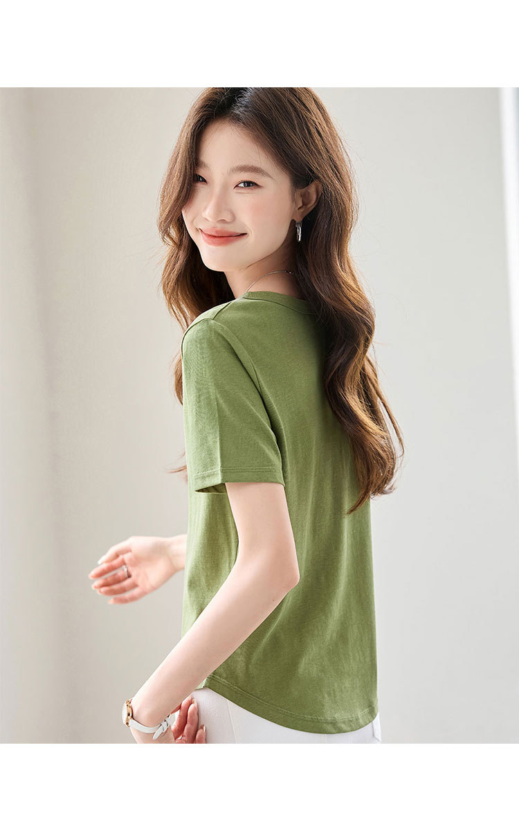 商品名称:【含莱赛尔】2025夏季百搭简约休闲气质显瘦纯色短袖T恤女 968671