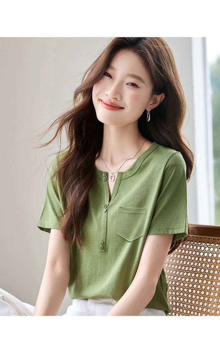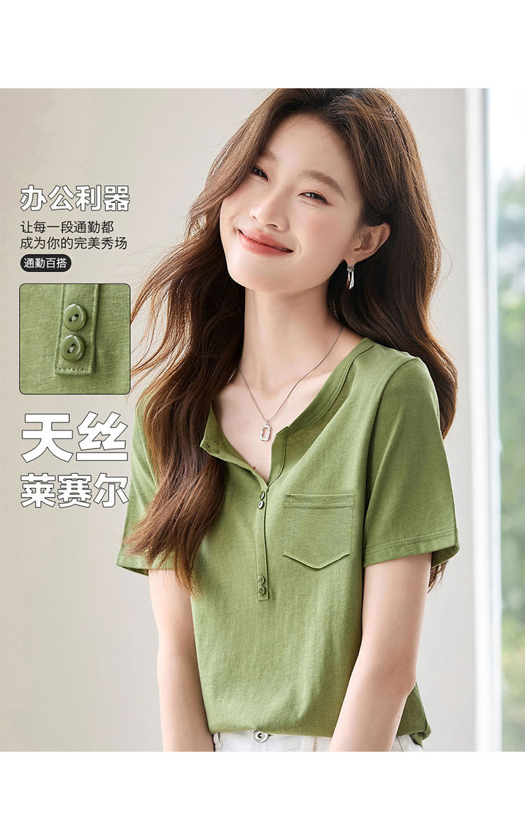 【含莱赛尔】2025夏季百搭简约休闲气质显瘦纯色短袖T恤女 968671