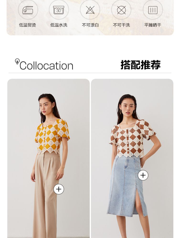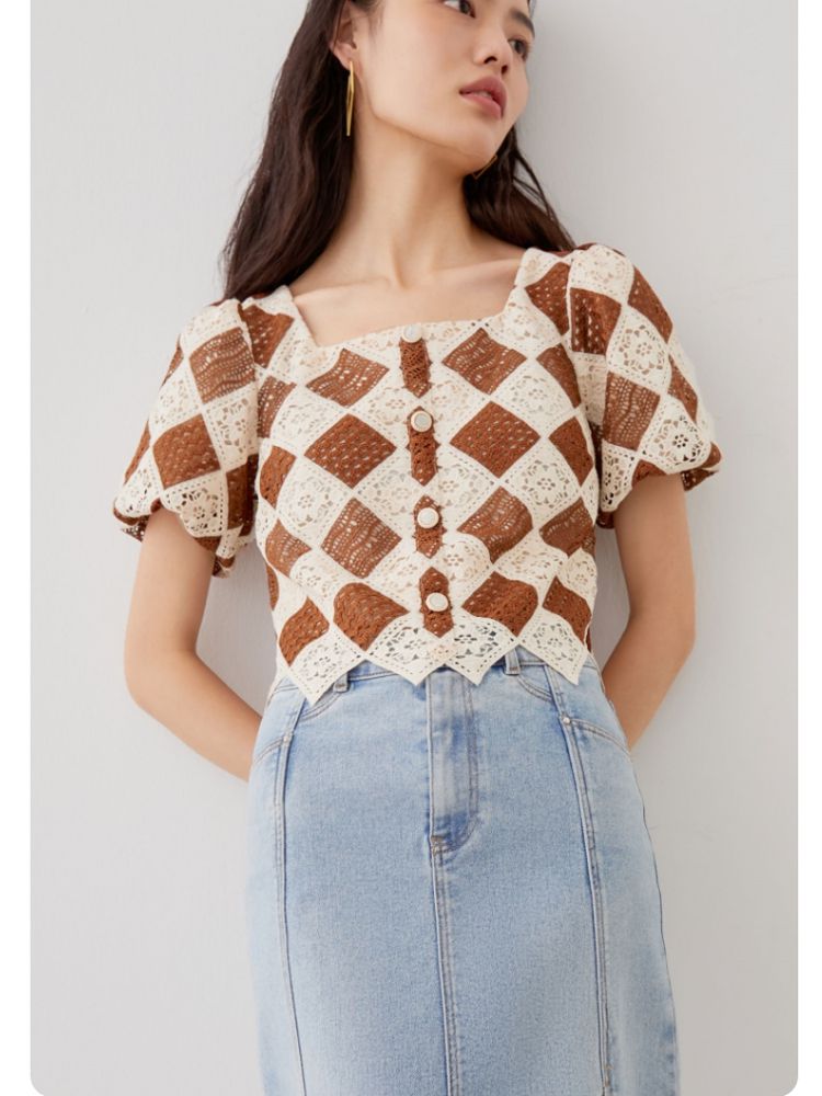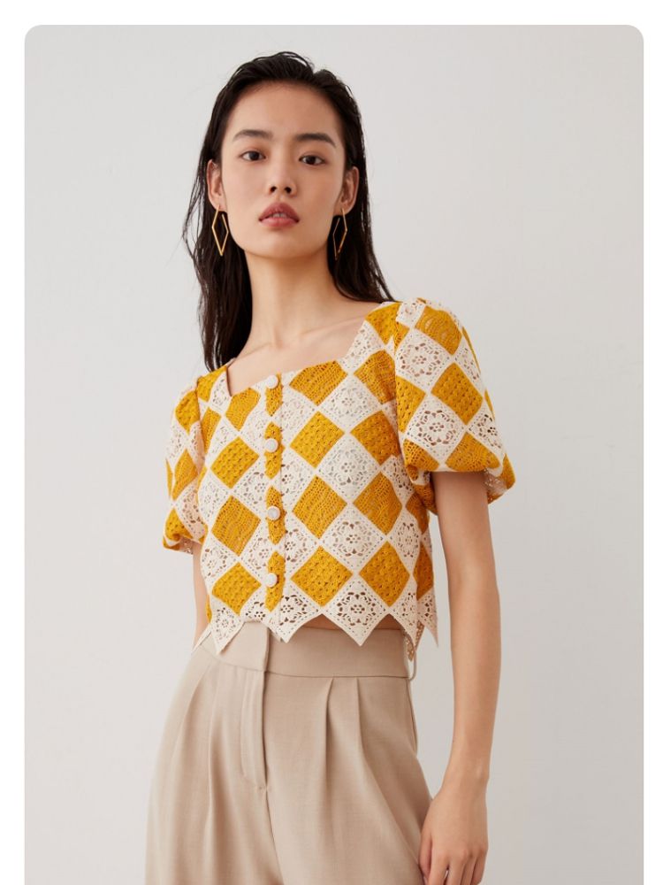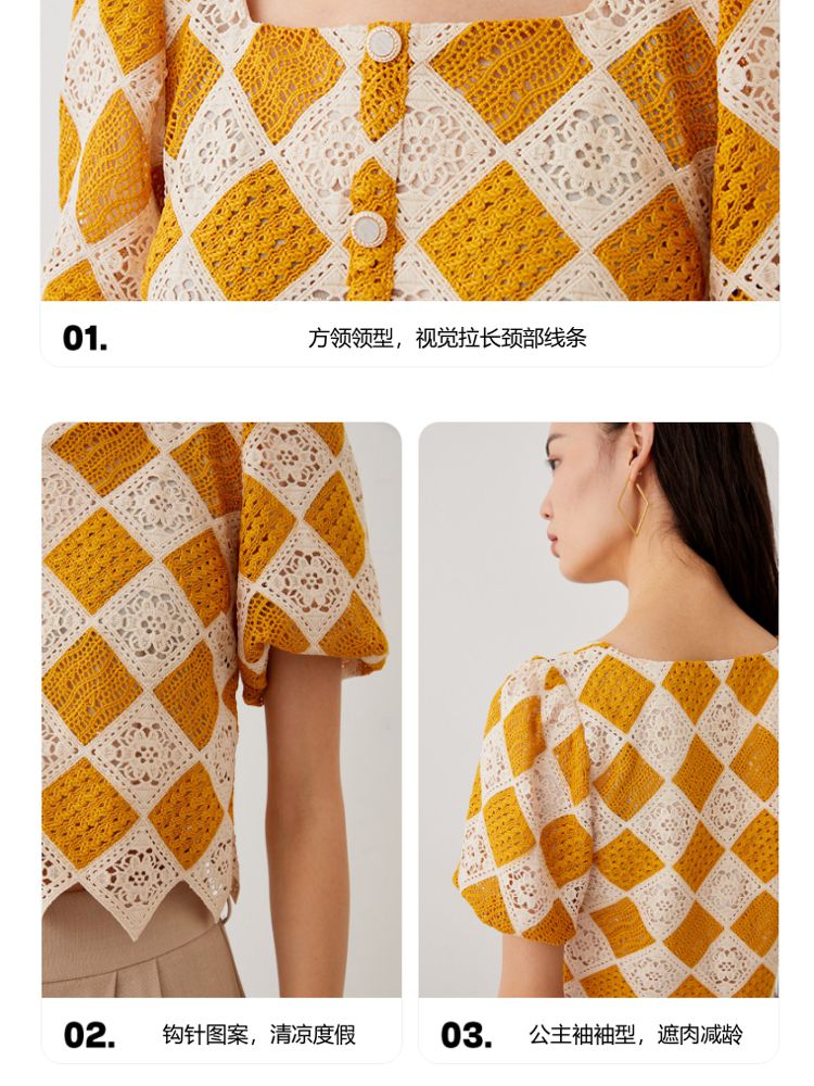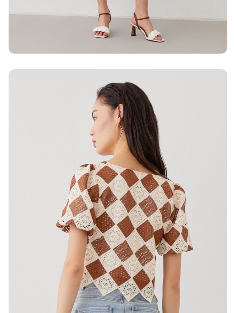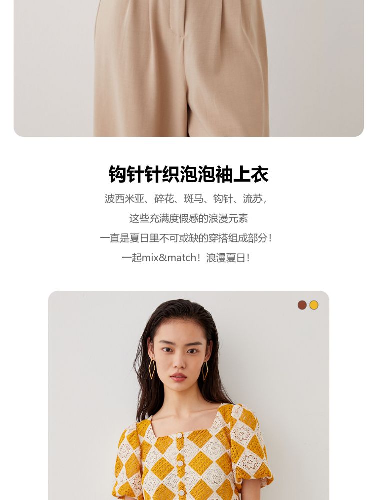 商品名称:【美拉德】春夏【钩针面料设计】春夏针织泡泡袖短袖上衣百搭时尚 712465