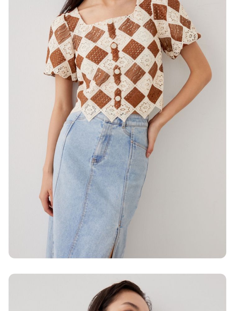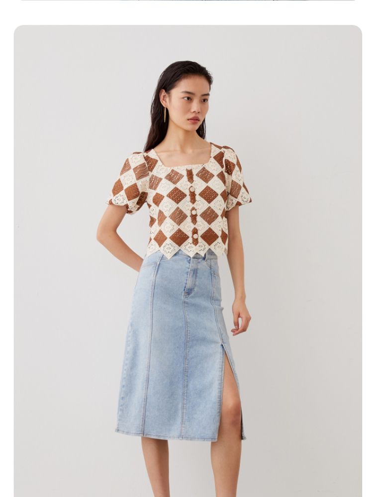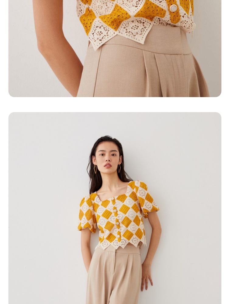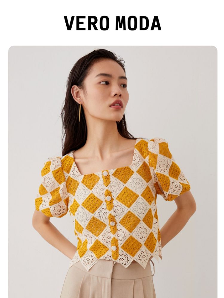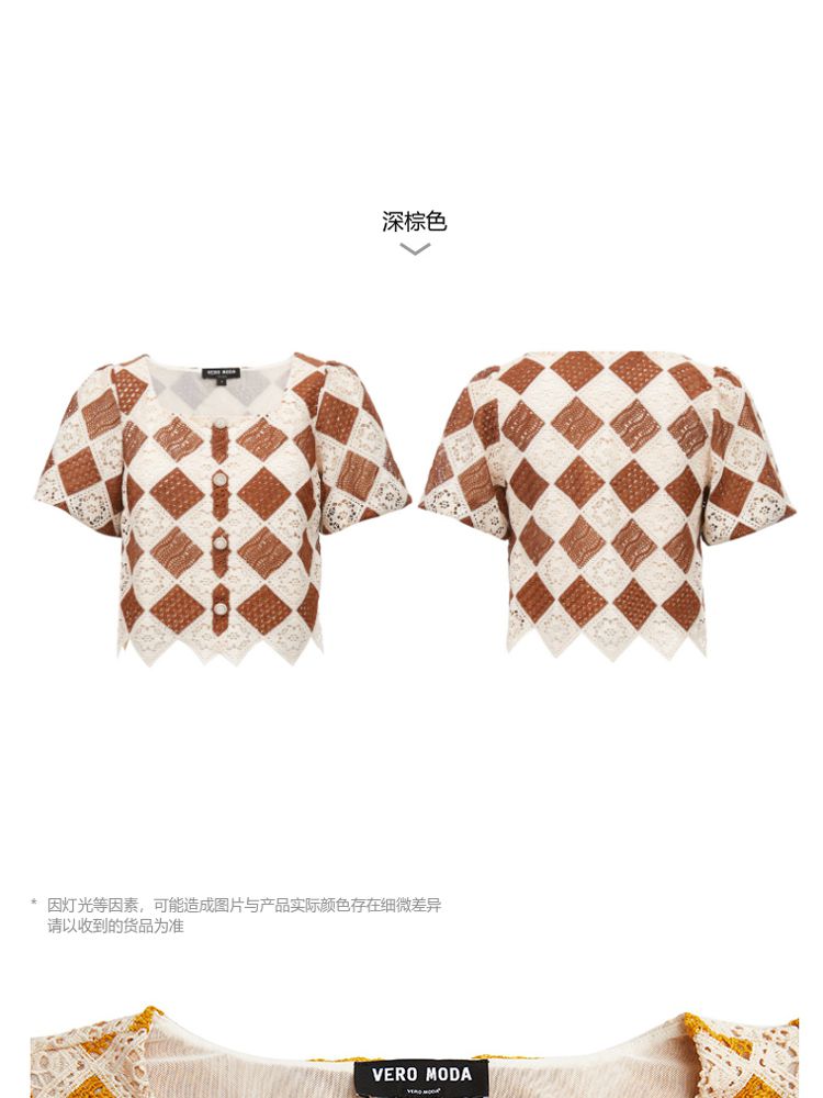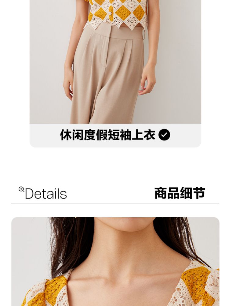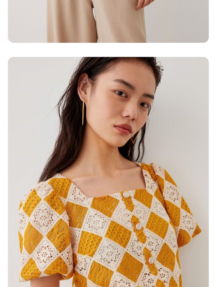 商品名称:【美拉德】春夏【钩针面料设计】春夏针织泡泡袖短袖上衣百搭时尚 712465