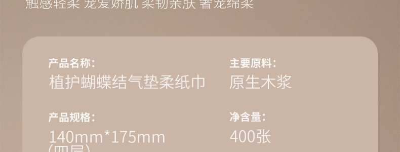 商品名称:植护 蝴蝶结4层气垫柔纸巾 100抽/包*20包