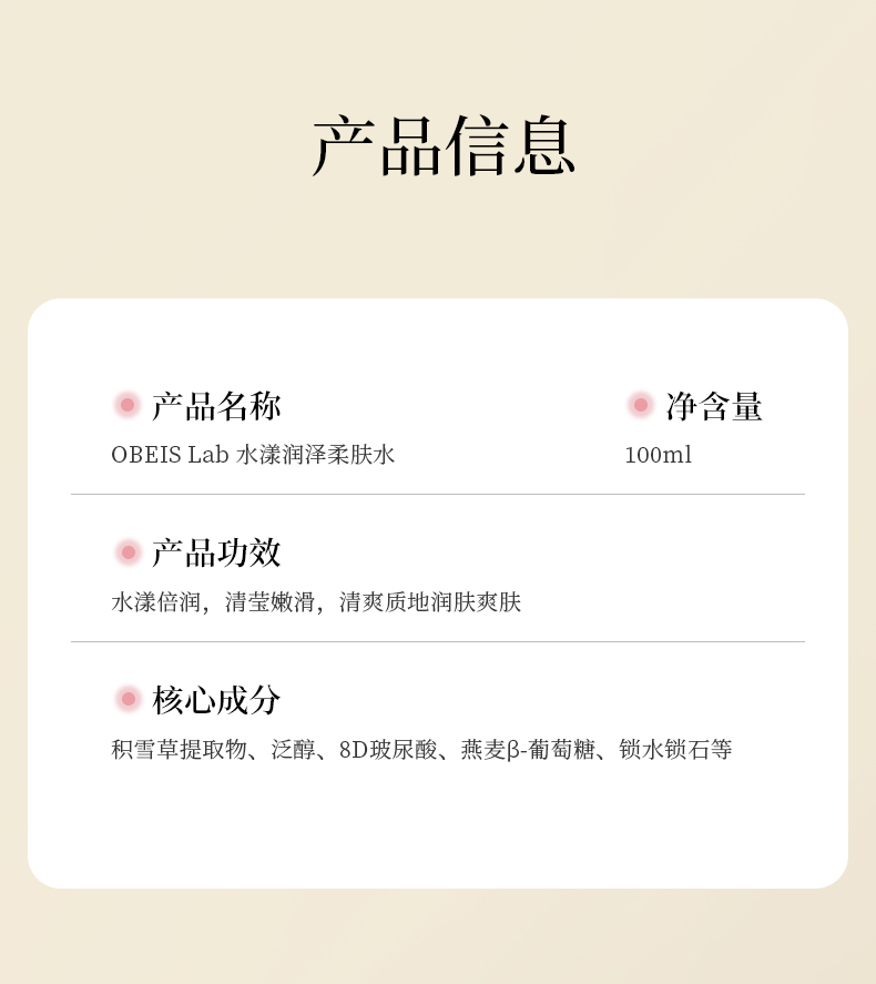 商品名称:obeis/欧贝斯水漾润泽柔肤水100ml