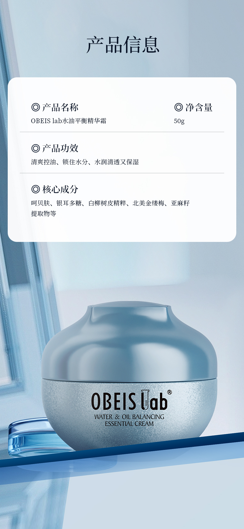 商品名称:obeis/欧贝斯水油平衡精华霜50g